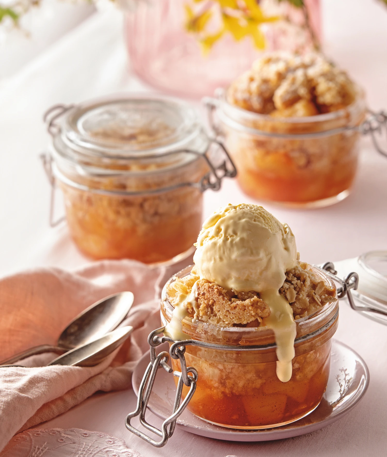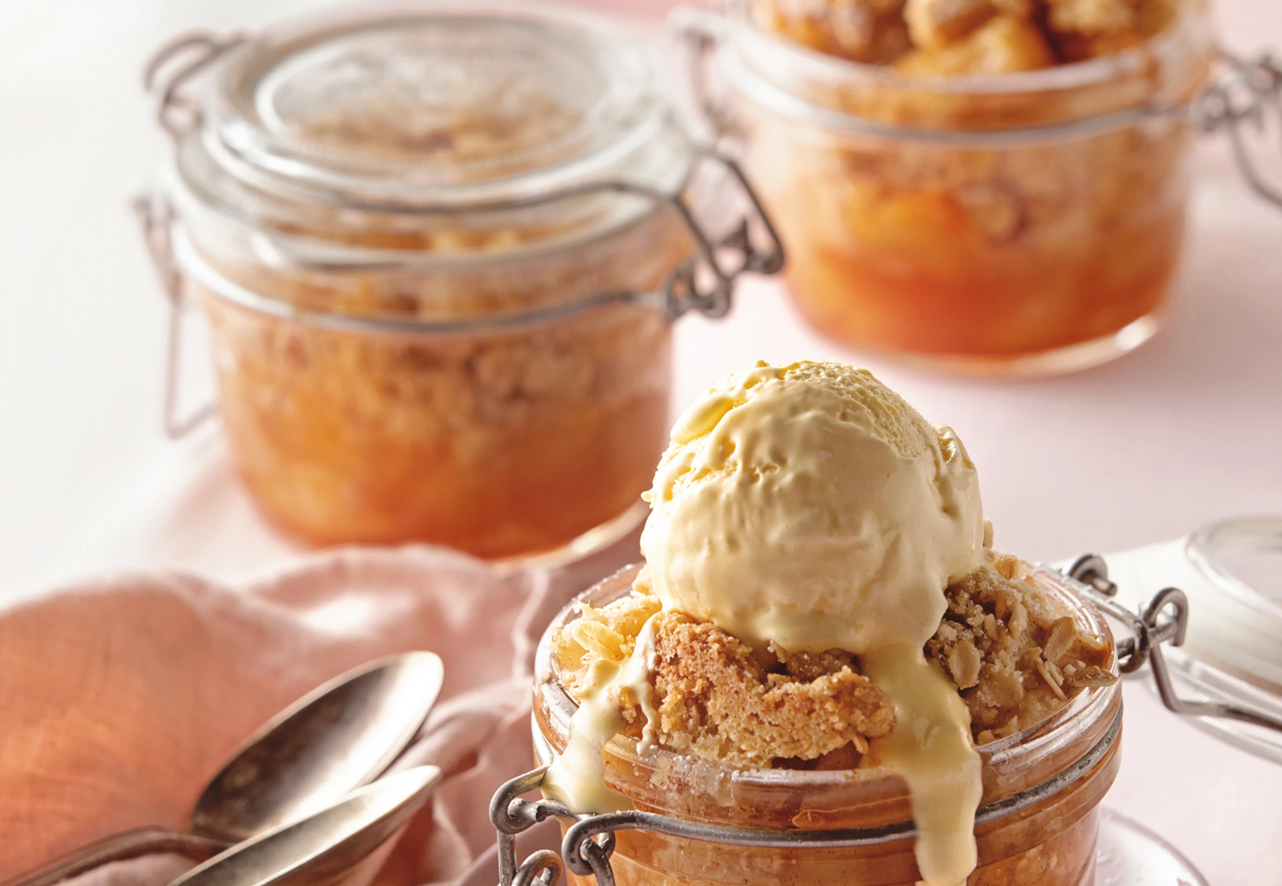 Rohr auf 190°C vorheizen. 4 Einmachgläser auf ein Backblech stellen.