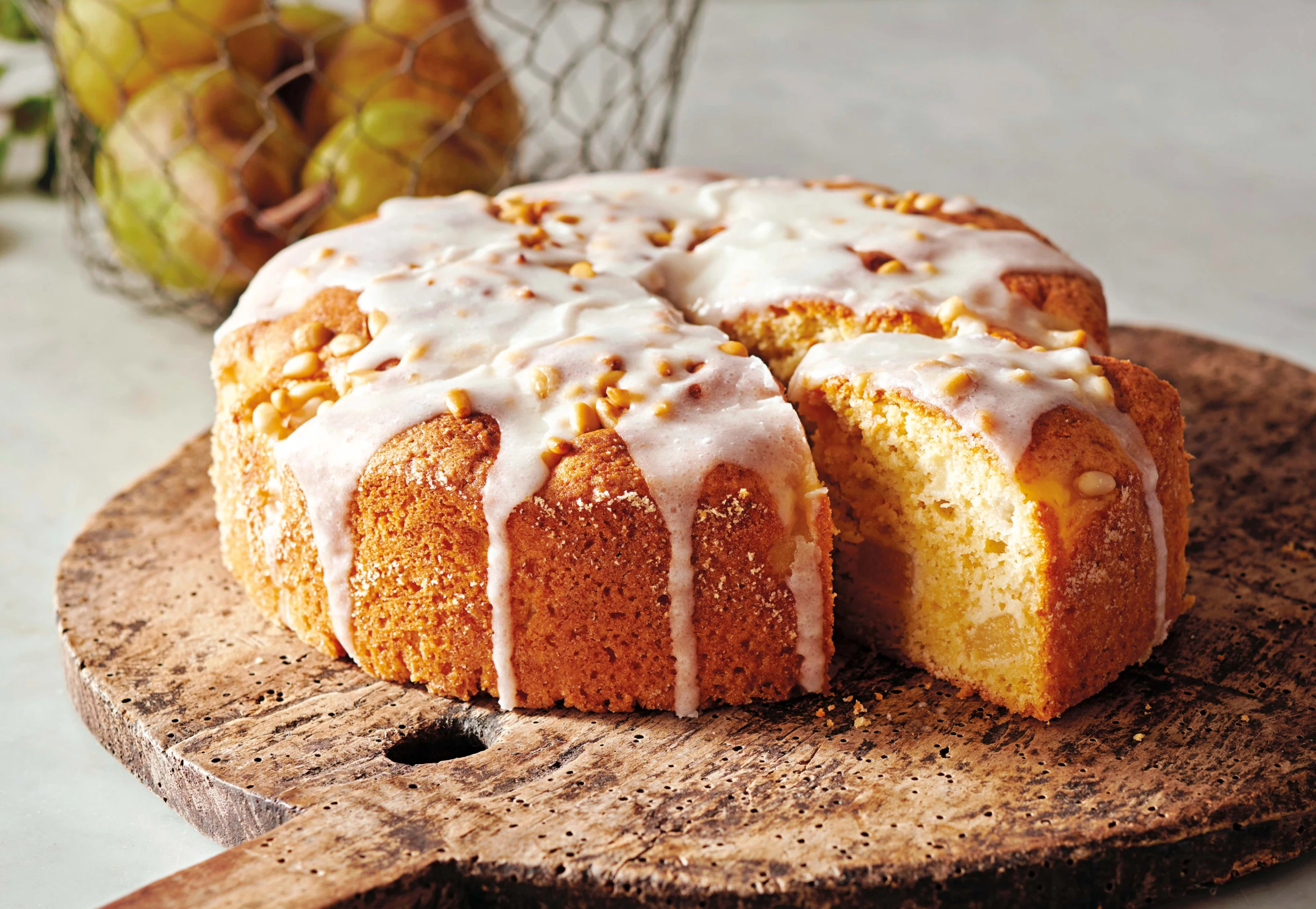 Butter, Zucker und Vanillepaste ca. 5 Minuten cremig mixen. Eier einzeln unterrühren. Mehl und Backpulver untermischen. Birnen und die Hälfte der Pignoli einrühren. Masse in der Form verstreichen und mit den übrigen Pignoli bestreuen.