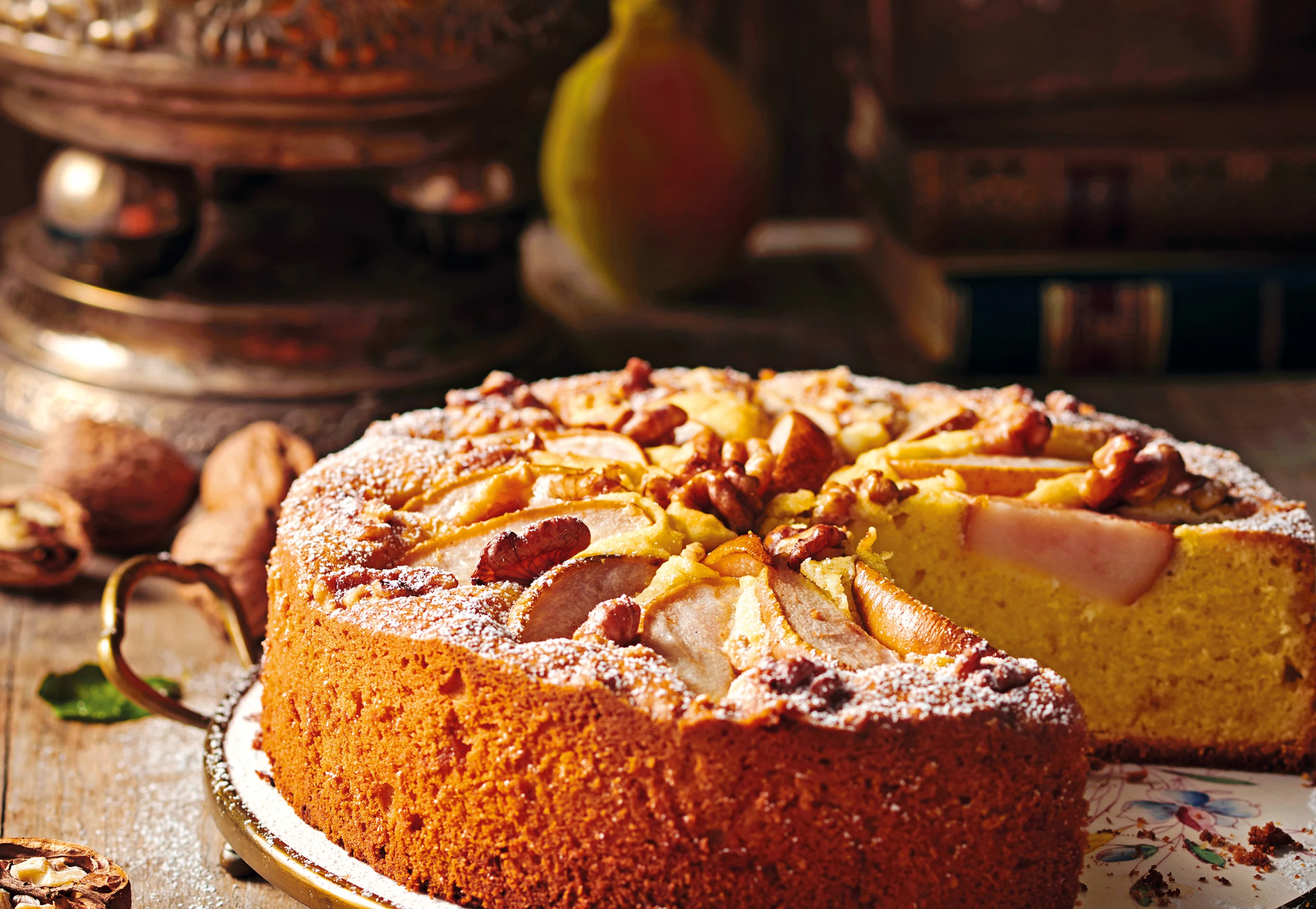 Birnenkuchen aus der Form lösen und mit Staubzucker bestreut servieren.