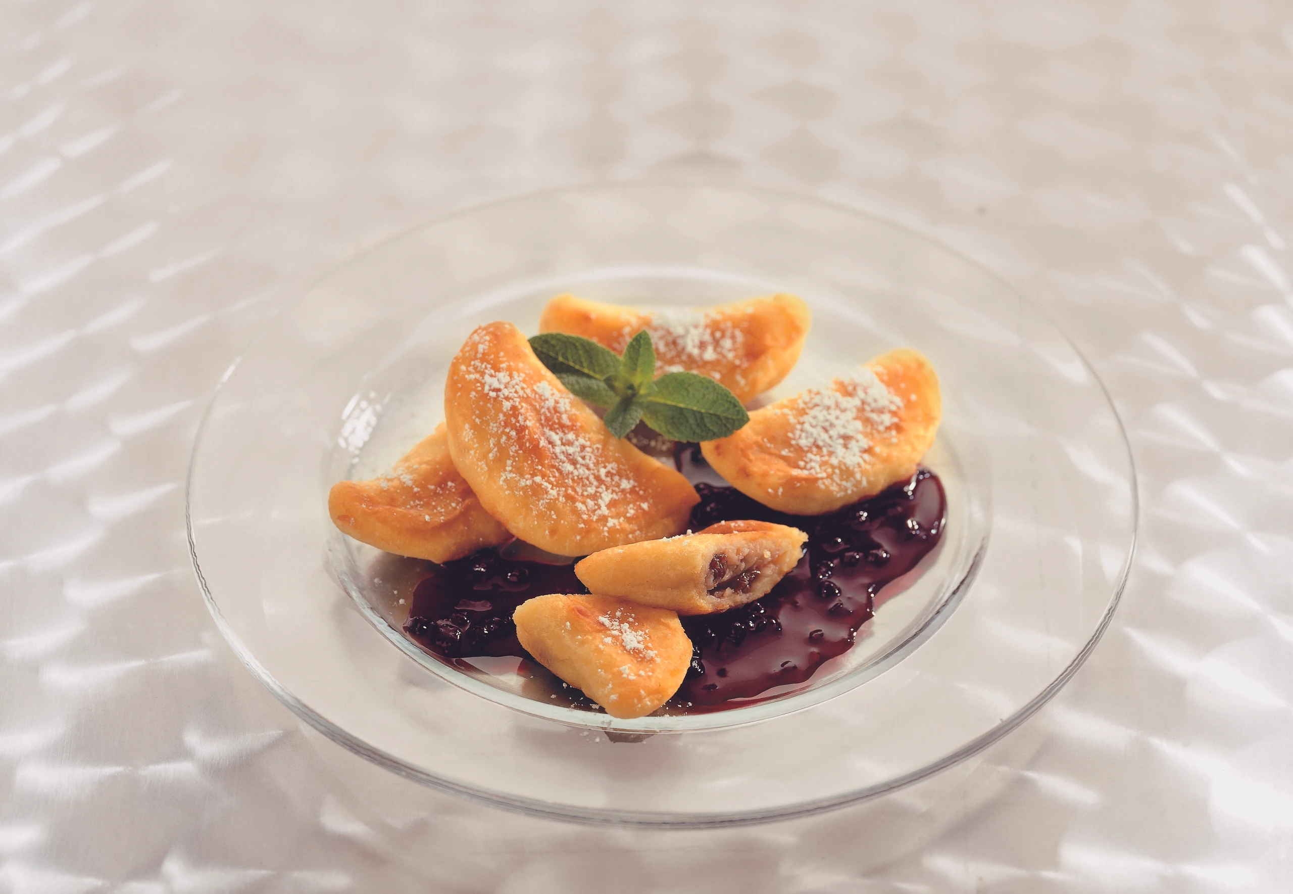 Tascherln auf Küchenpapier gut abtropfen lassen. Holunder-Kompott mit Rotwein verrühren. Die Tascherln mit Kompott anrichten und mit Staubzucker bestreut servieren.