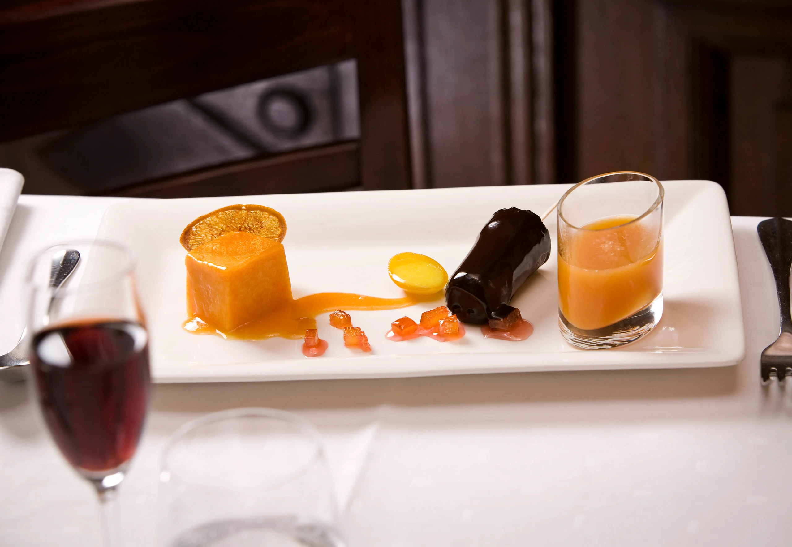 Förmchen kurz in heißes Wasser tauchen, Mousse auf Teller stürzen, mit Kürbis, Orangensaft und Campari-Grog servieren. Zusätzlich kann man das Dessert mit knusprigen Orangenscheiben und Orangeat garnieren.