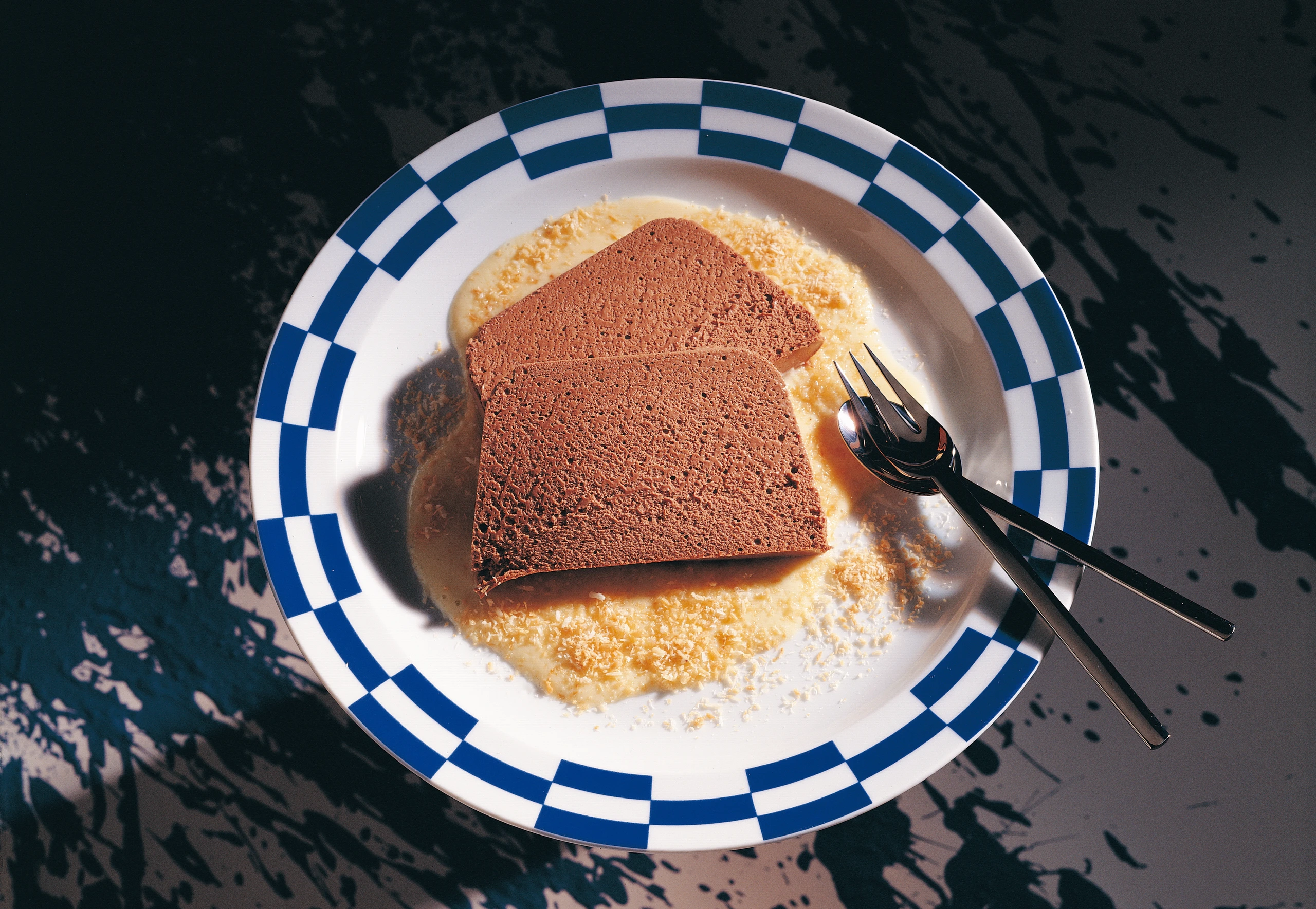 Gelatine gut ausdrücken und in der geschmolzenen Schokolade auflösen. Dottermasse und die Hälfte vom Obers in die Schokolade rühren, restliches Obers unterheben. Masse in die Form füllen und glattstreichen.