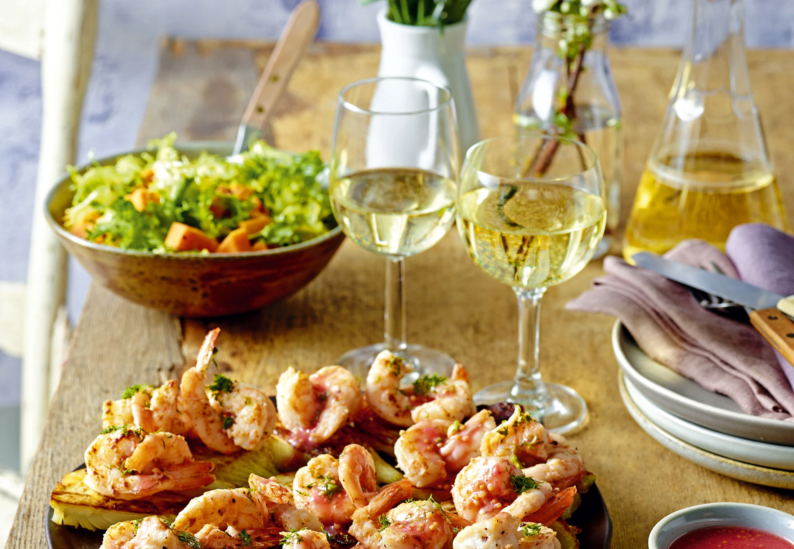 Von den Garnelen die Schale entfernen, Garnelen am Rücken aufschneiden und den Darm entfernen.