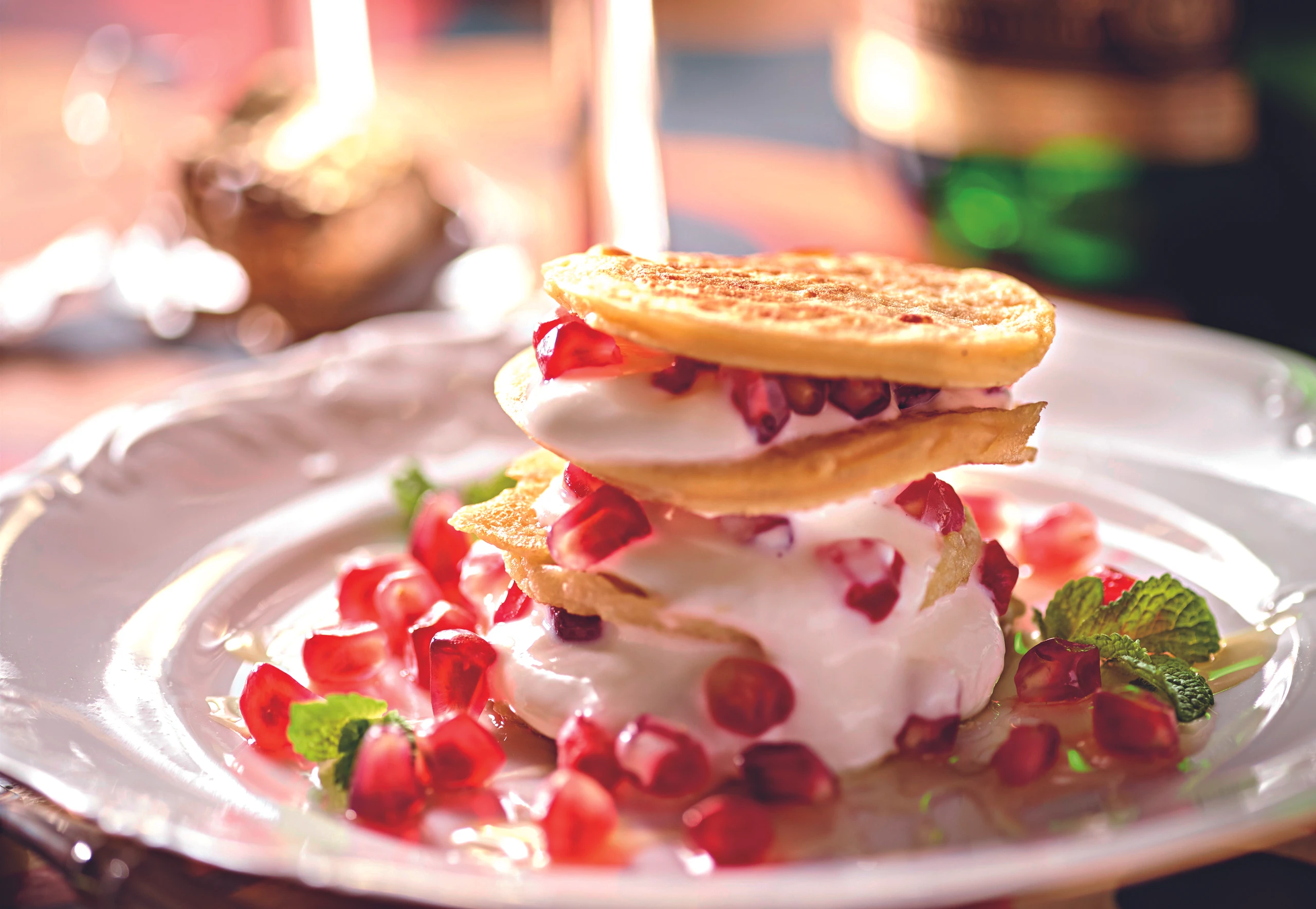 Blinis mit Sekt-Topfencreme und Granatapfel