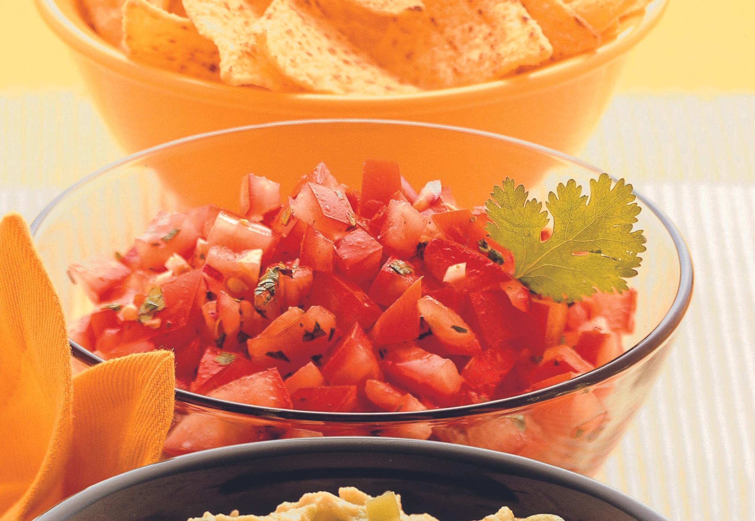 Paradeiser, Chili, Knoblauch und Petersil oder Koriander vermischen. Salsa mit Salz und Oregano würzen und etwas durchziehen lassen. Zu diesem cremigen Dip knusprige Tortilla-Chips und die blitzschnelle Salsa Picante reichen.
