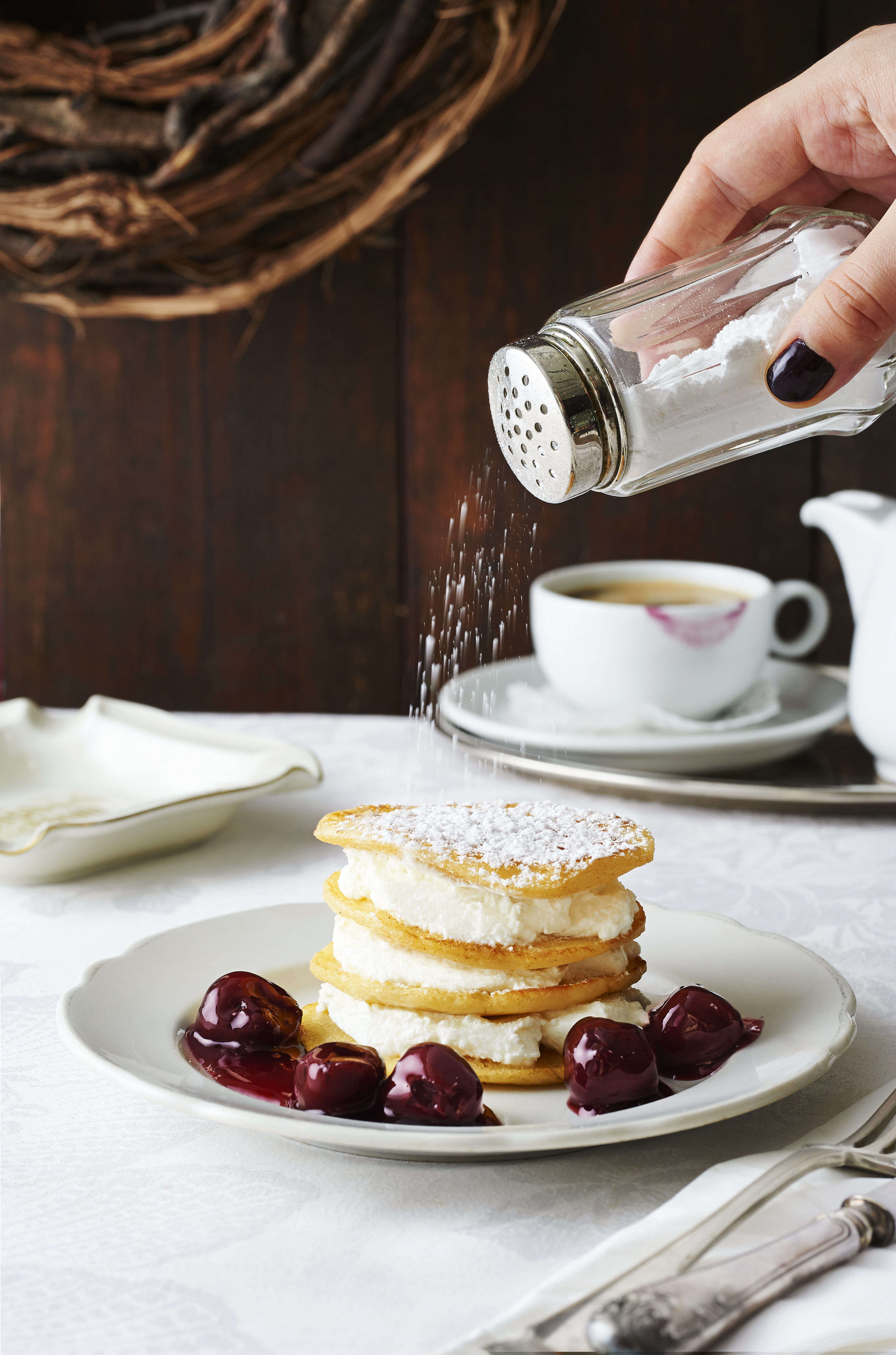 Böhmische Liwanzen mit Topfen und Sauerkirschenkompott