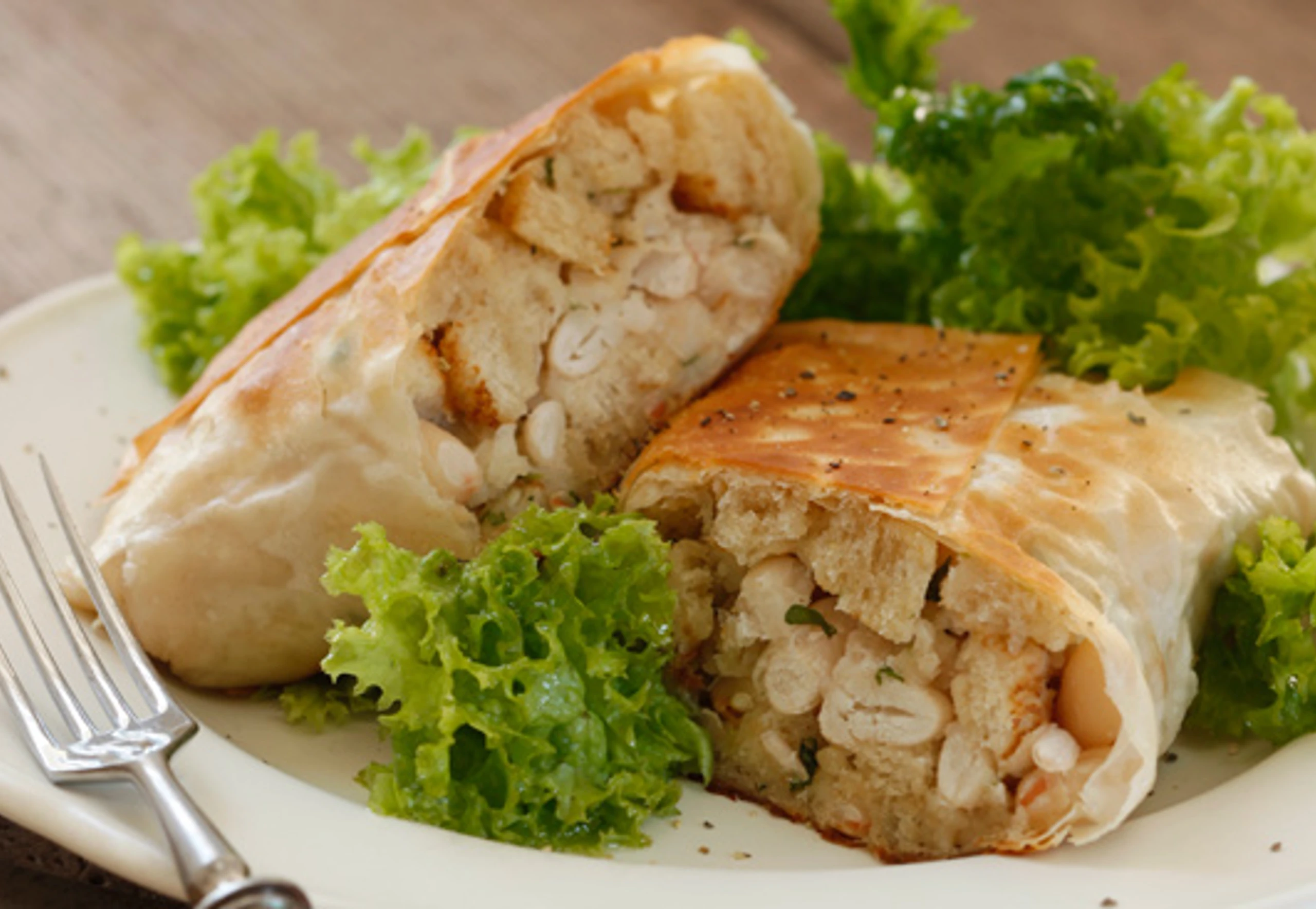 In einer großen Pfanne 1 EL Schmalz erhitzen, Strudel darin langsam beidseitig knusprig braten. Bohnenstrudel mit Blattsalat servieren.