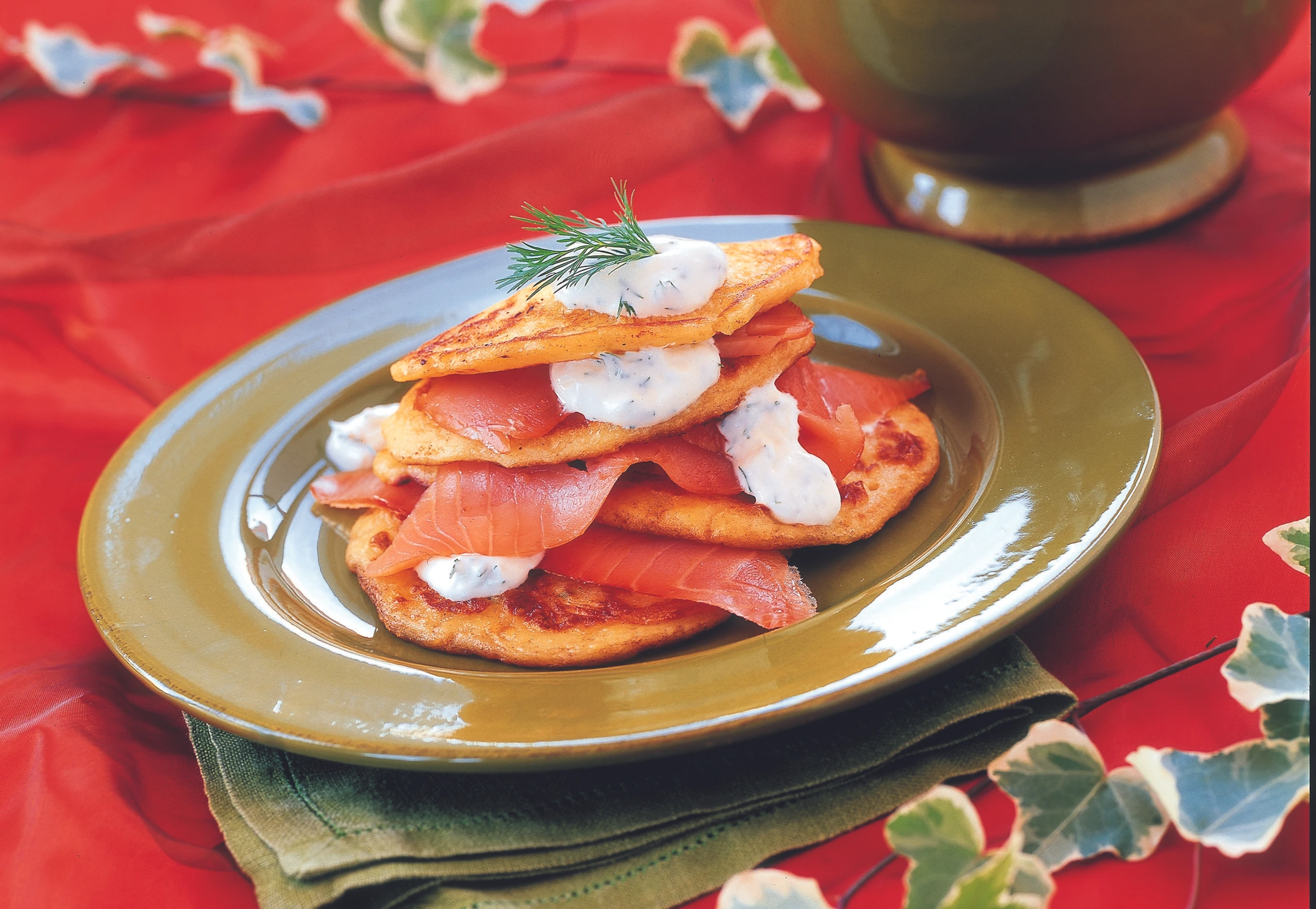 Sauerrahm mit Dille und etwas Salz glatt rühren. Boxty mit Räucherlachs und Dillrahm anrichten.
