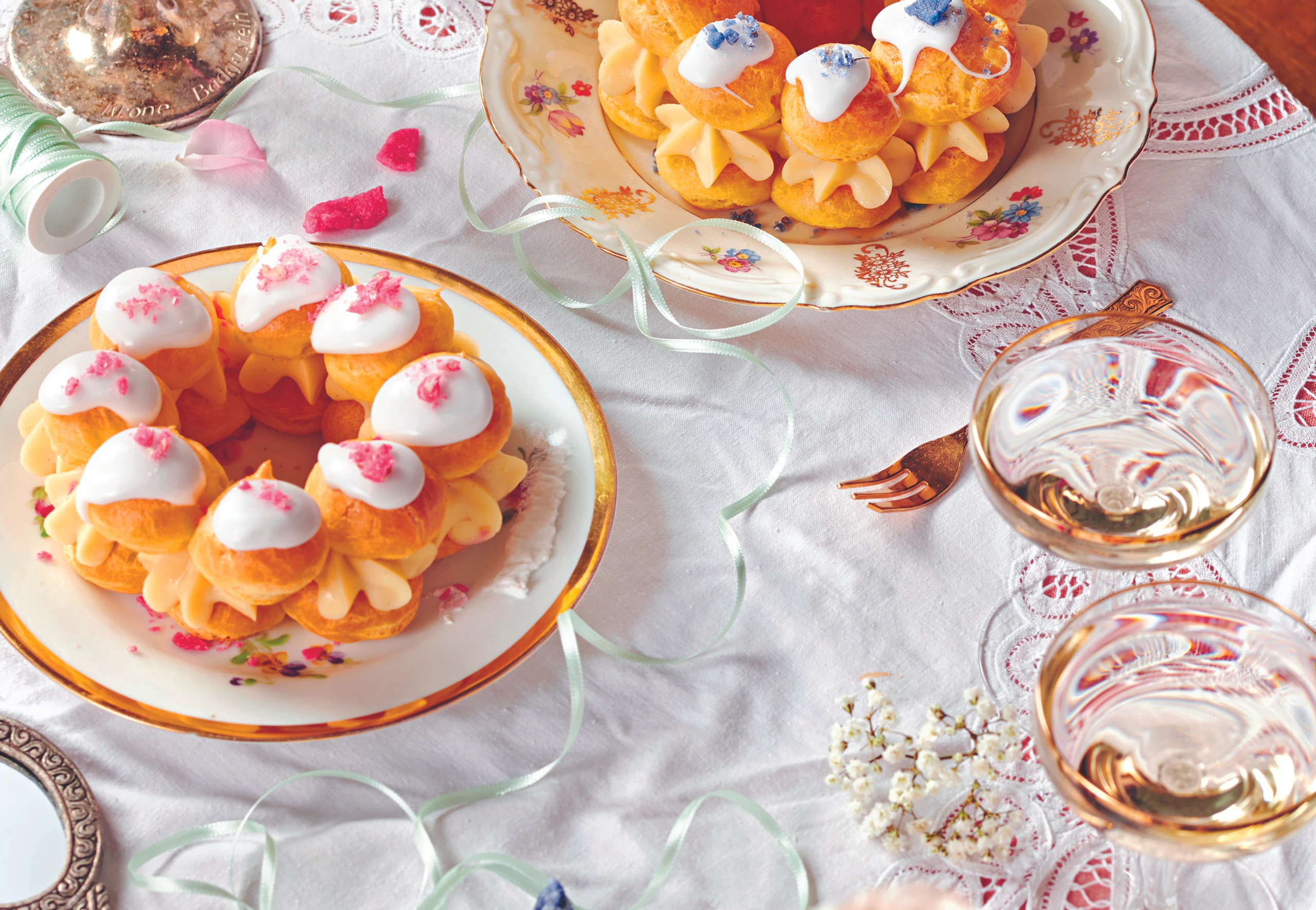 Brandteigkränzchen mit Crème Pâtissière & kandierten Blüten