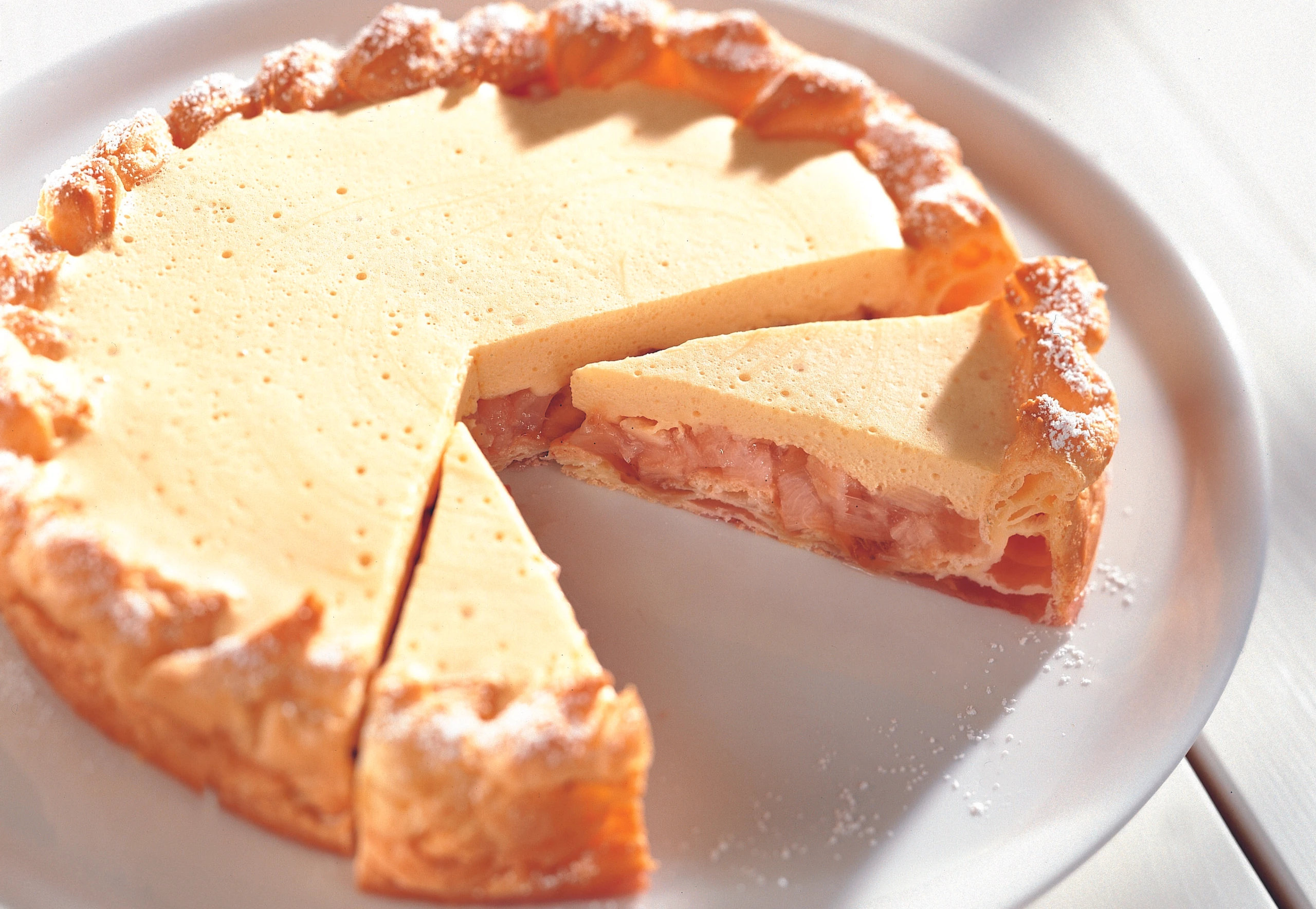 Teig in einen Dressiersack (Sterntülle) füllen und spiralförmig auf den Formenboden dressieren. Übrige Masse so auf den Teigboden dressieren, dass ein erhöhter Rand entsteht.
