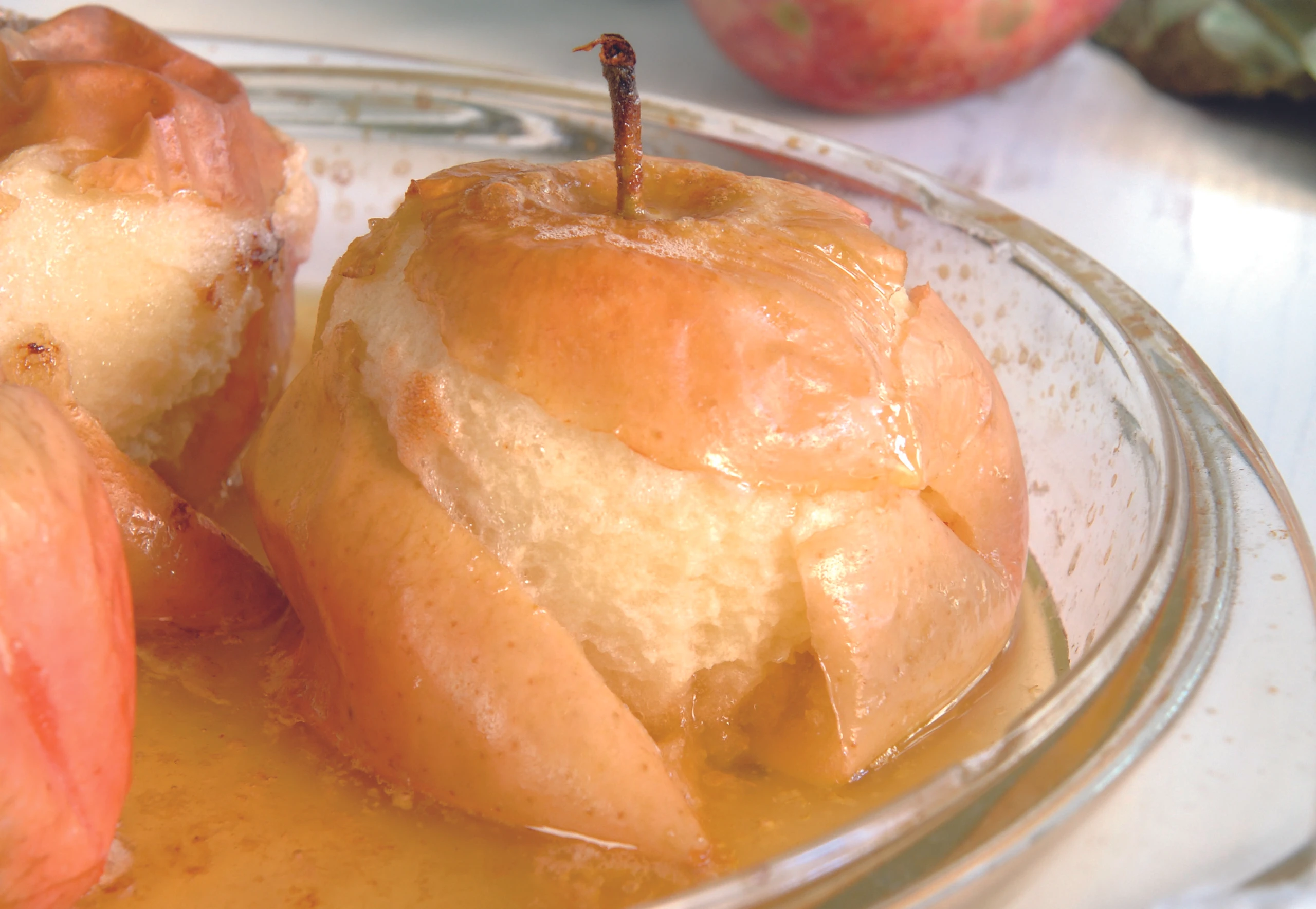 Die Äpfel sind fertig gegart, wenn die Schale aufgesprungen ist und der Fruchtzucker leicht zu karamellisieren beginnt.