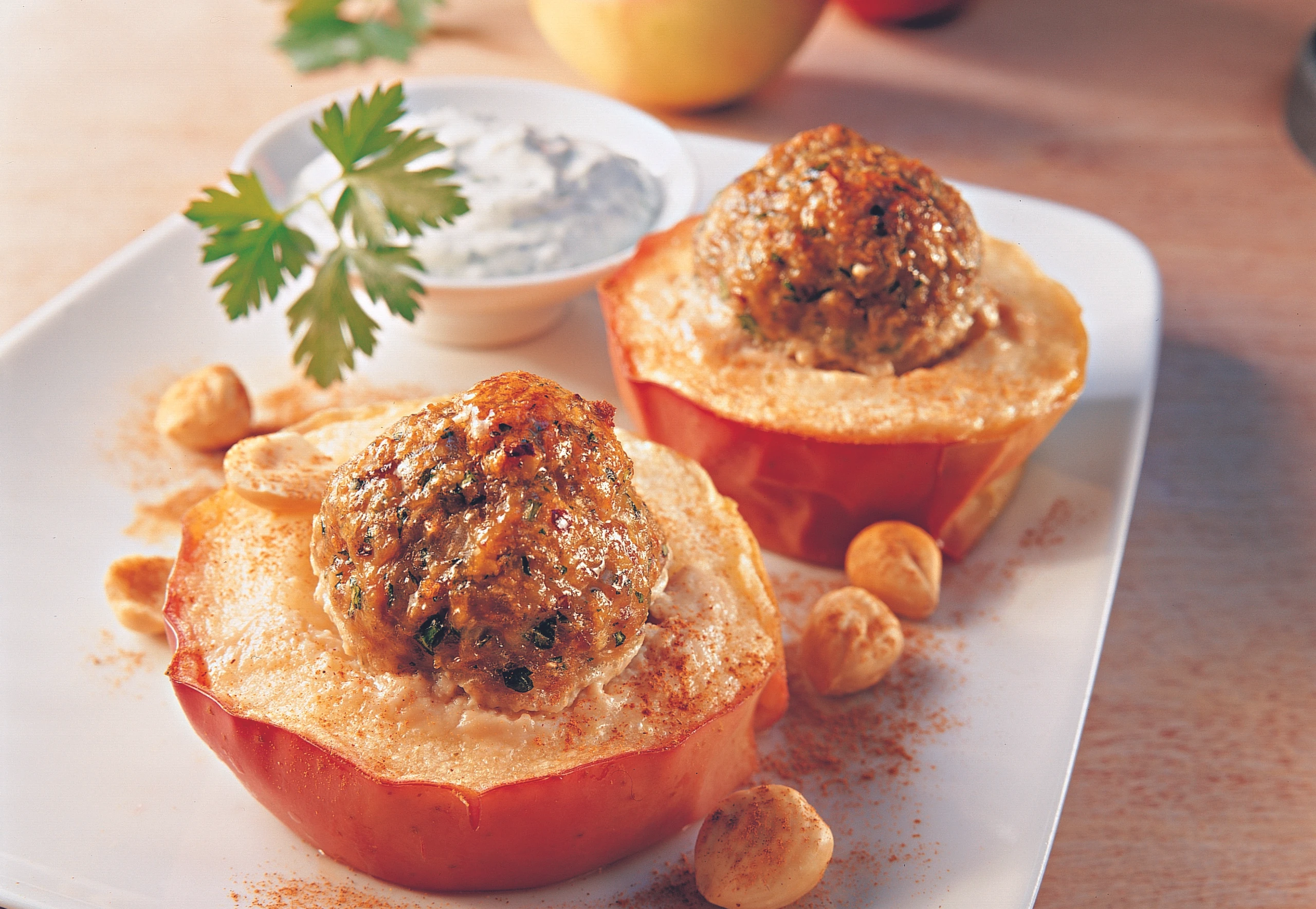 Bratapfel mit Faschiertem und Joghurt-Dip