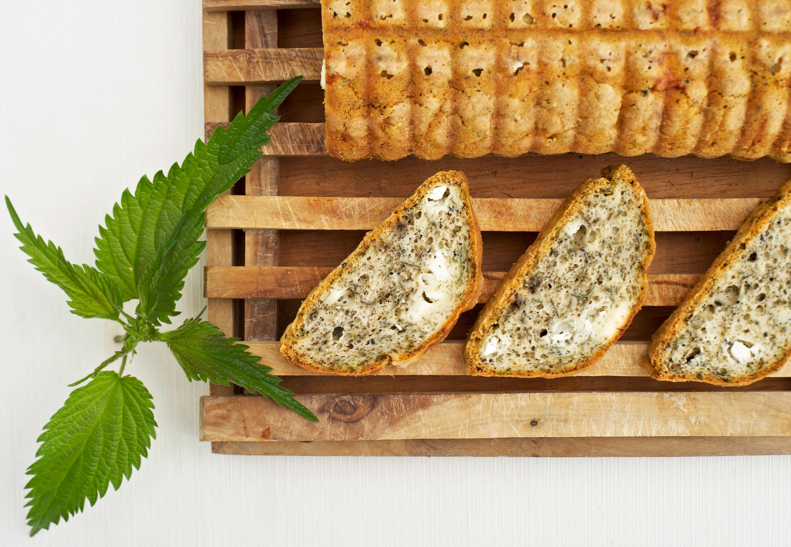 Eine Kastenform (Inhalt ca. 1,5 Liter) mit Butter ausstreichen und mit Mehl ausstreuen. Rohr auf 180°C vorheizen. Brennnesselblätter klein, Schafkäse klein würfelig schneiden.