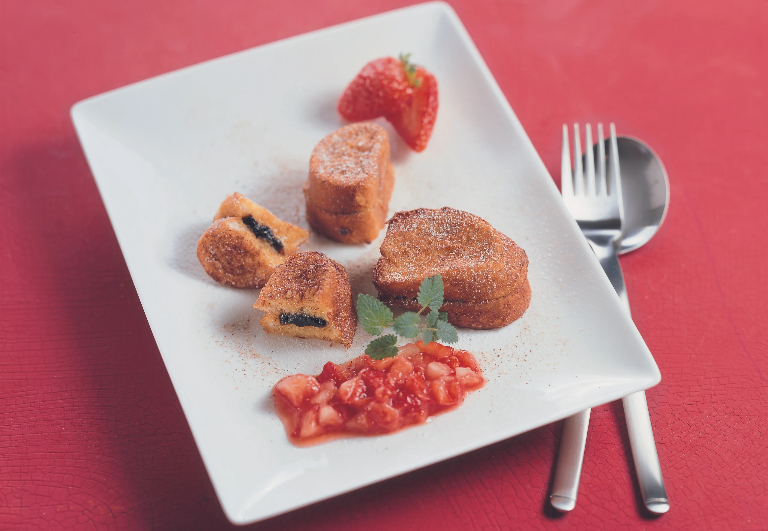 Staubzucker mit Zimt vermischen, Pofesen damit bestreuen und mit Erdbeerragout garniert servieren.