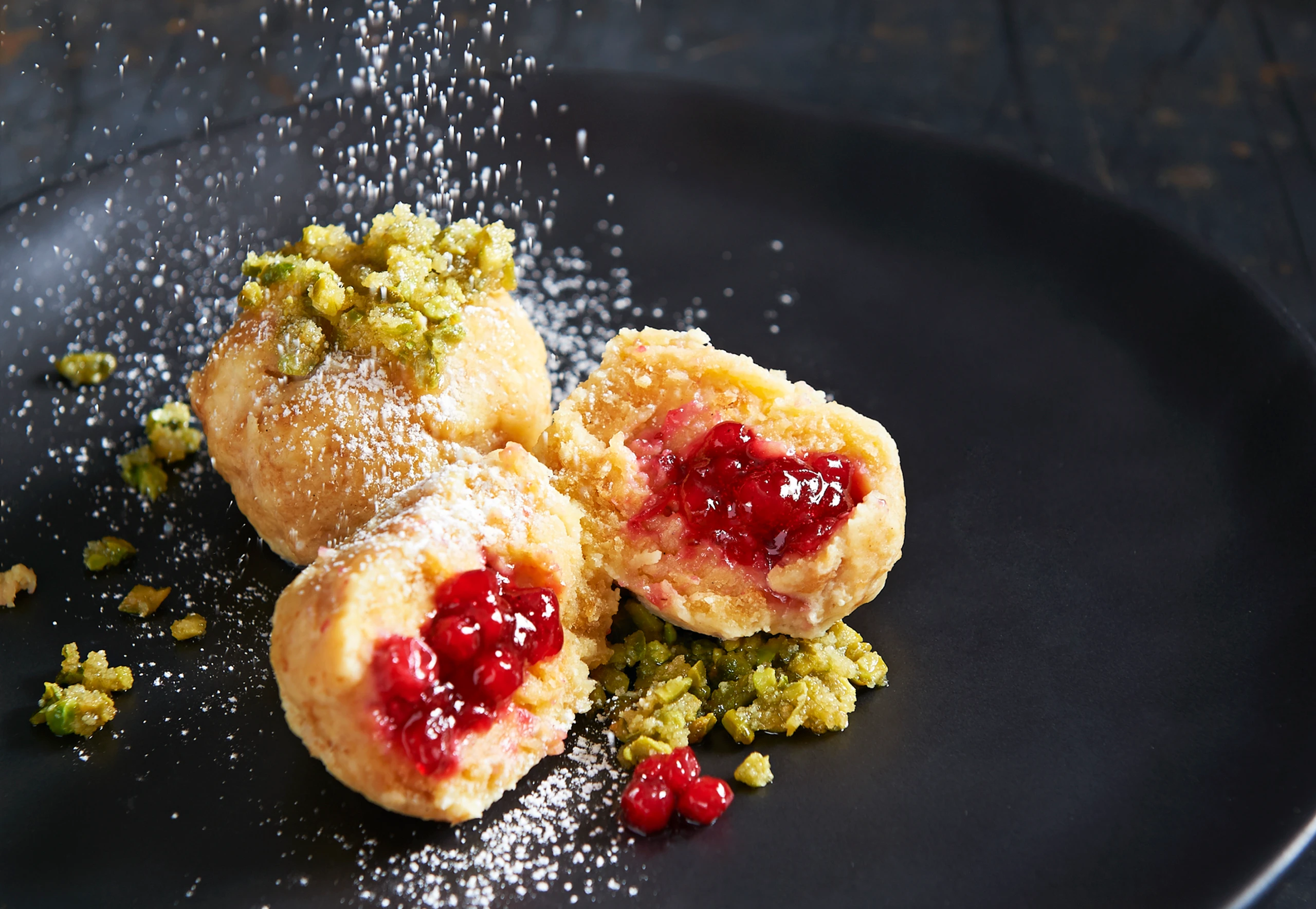Briocheknödel mit Preiselbeeren und Pistazienbutter