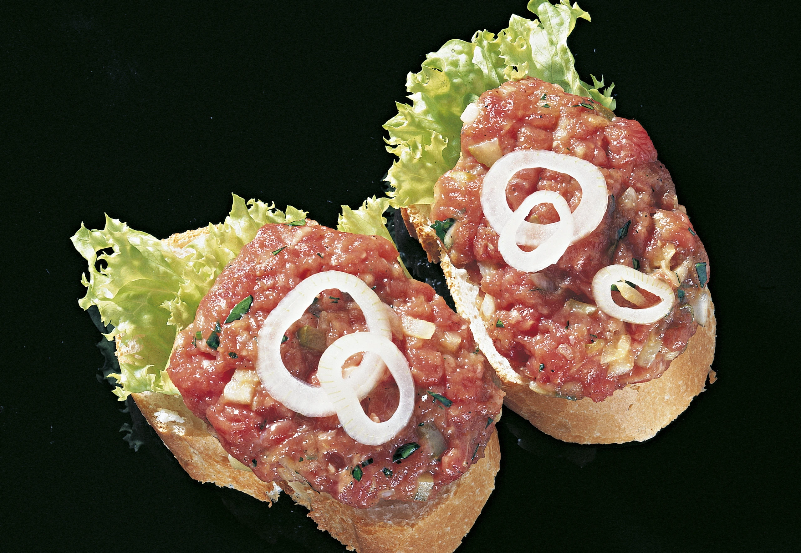 Brötchen mit Beef tatare aus Rindslungenbraten