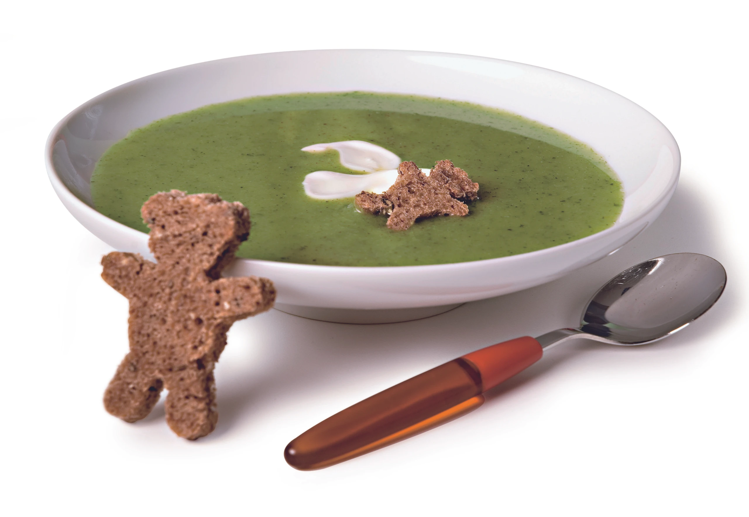 Suppe fein pürieren, mit Salz und Pfeffer abschmecken. Sauerrahm und Brot-Bärli zur Suppe reichen.
