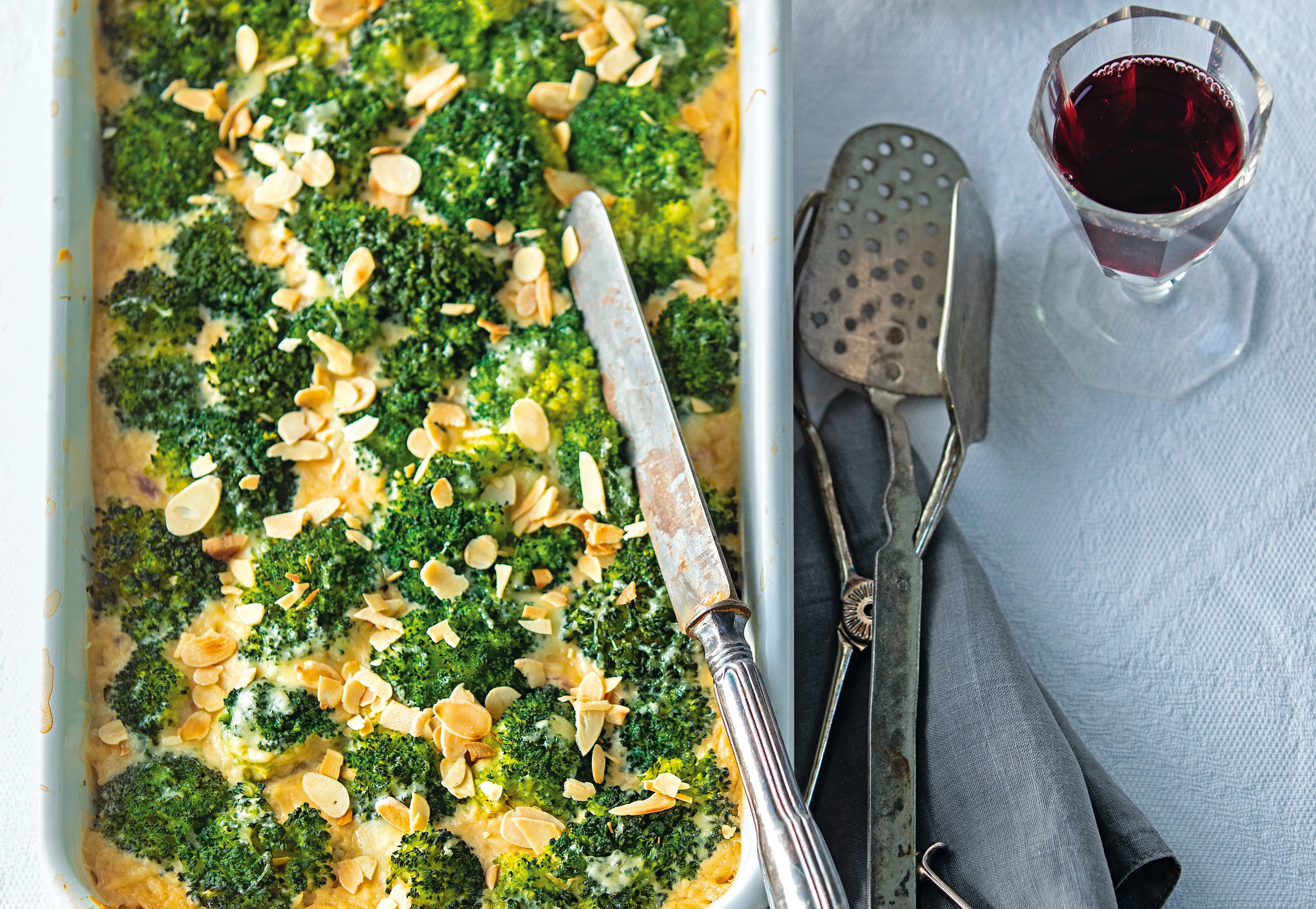 Brokkoliauflauf mit Granatapfel-Karottensalat