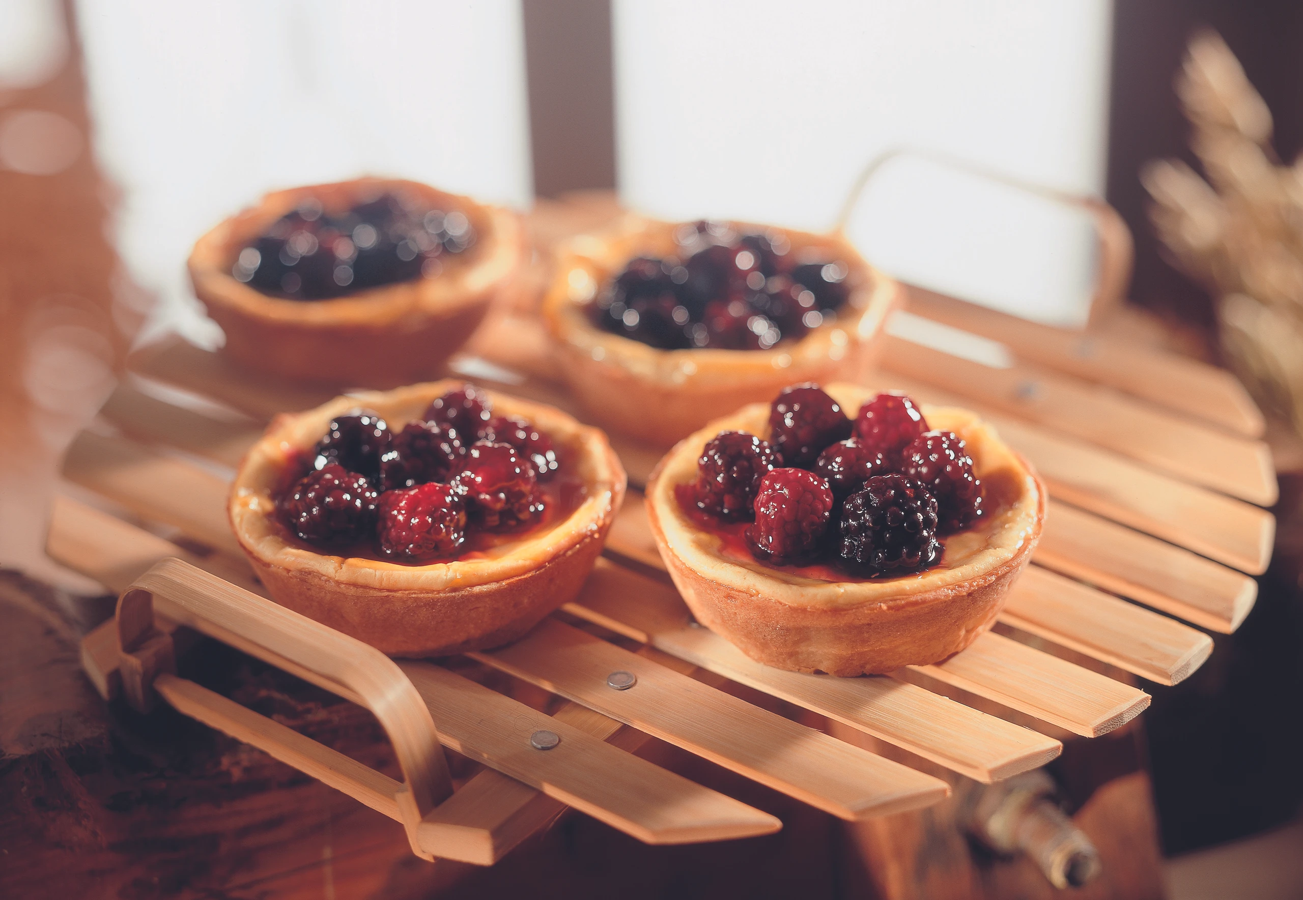 Für die Garnitur Beeren kurz waschen und gut trocken tupfen. Tartelettes vorsichtig aus den Formen nehmen. Die Oberfläche mit Marmelade bestreichen und mit den Brombeeren belegen. Tortengelee nach Anleitung zubereiten, die Beeren damit bestreichen. Tartelettes zum Festwerden des Gelees ca. 30 Minuten kühlen.