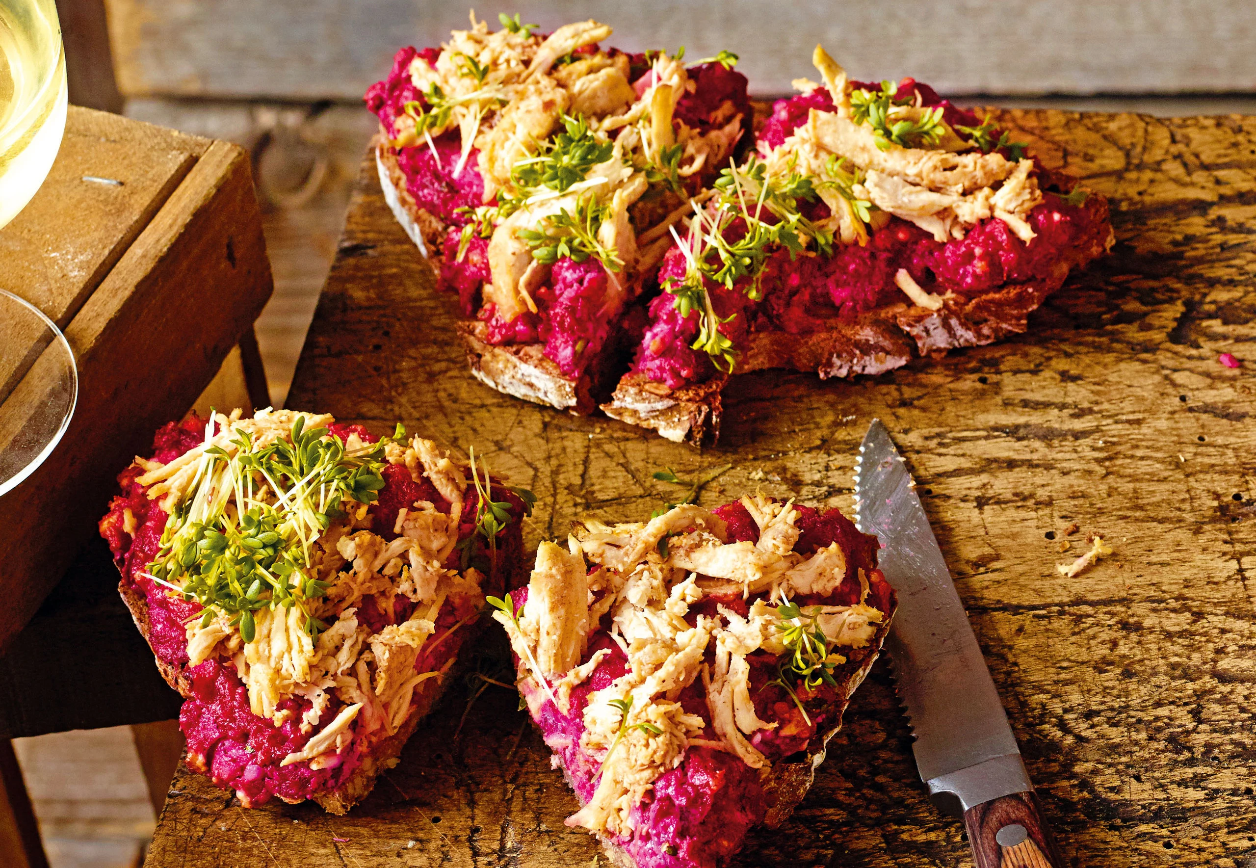 Brot mit Rote Rüben und Pulled Chicken