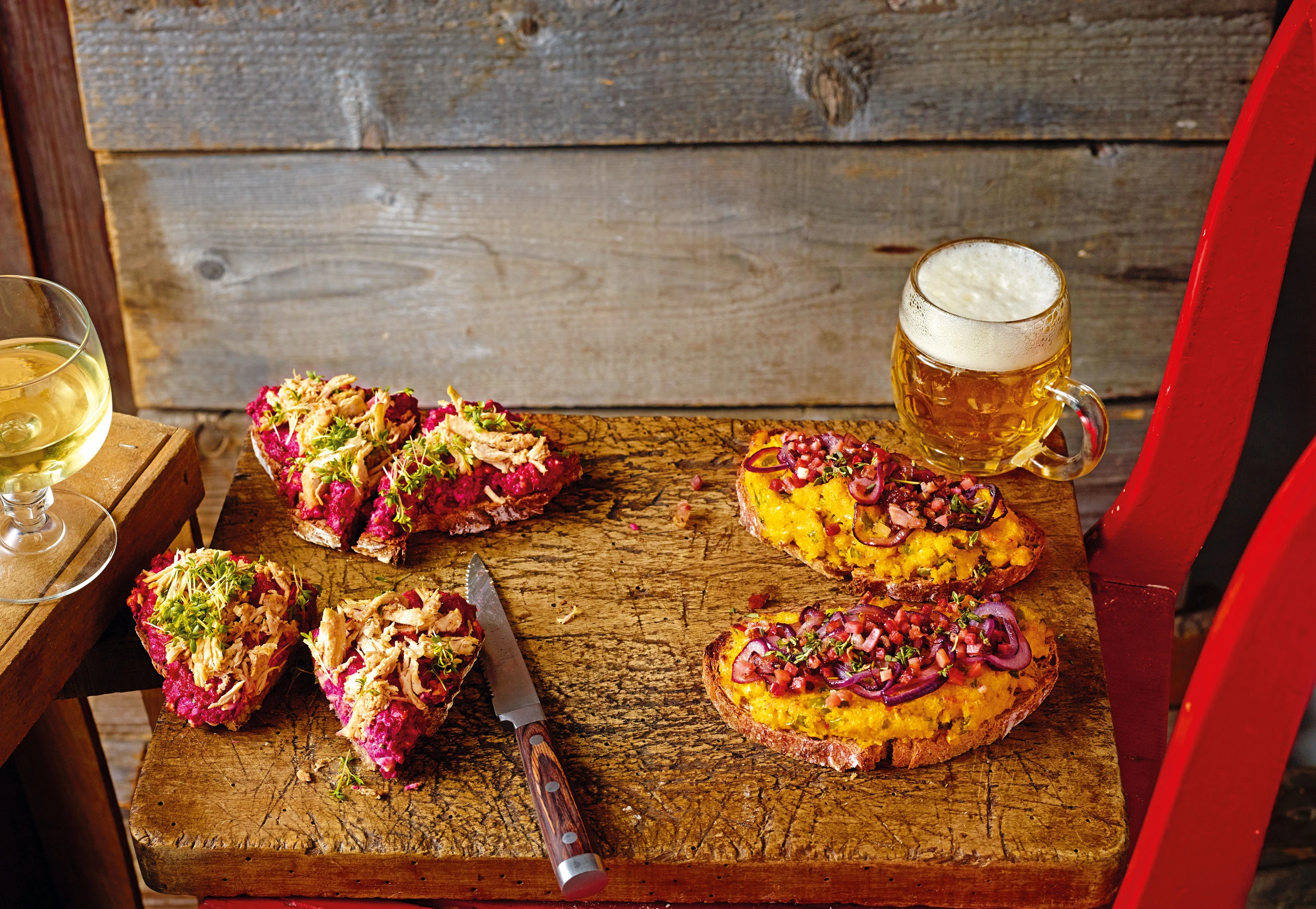 Für den Aufstrich Rüben und Feta grob raspeln. Rüben behutsam ausdrücken und mit Feta, Gervais und Öl verrühren. Aufstrich mit Salz, Pfeffer und Kümmel kräftig würzen.