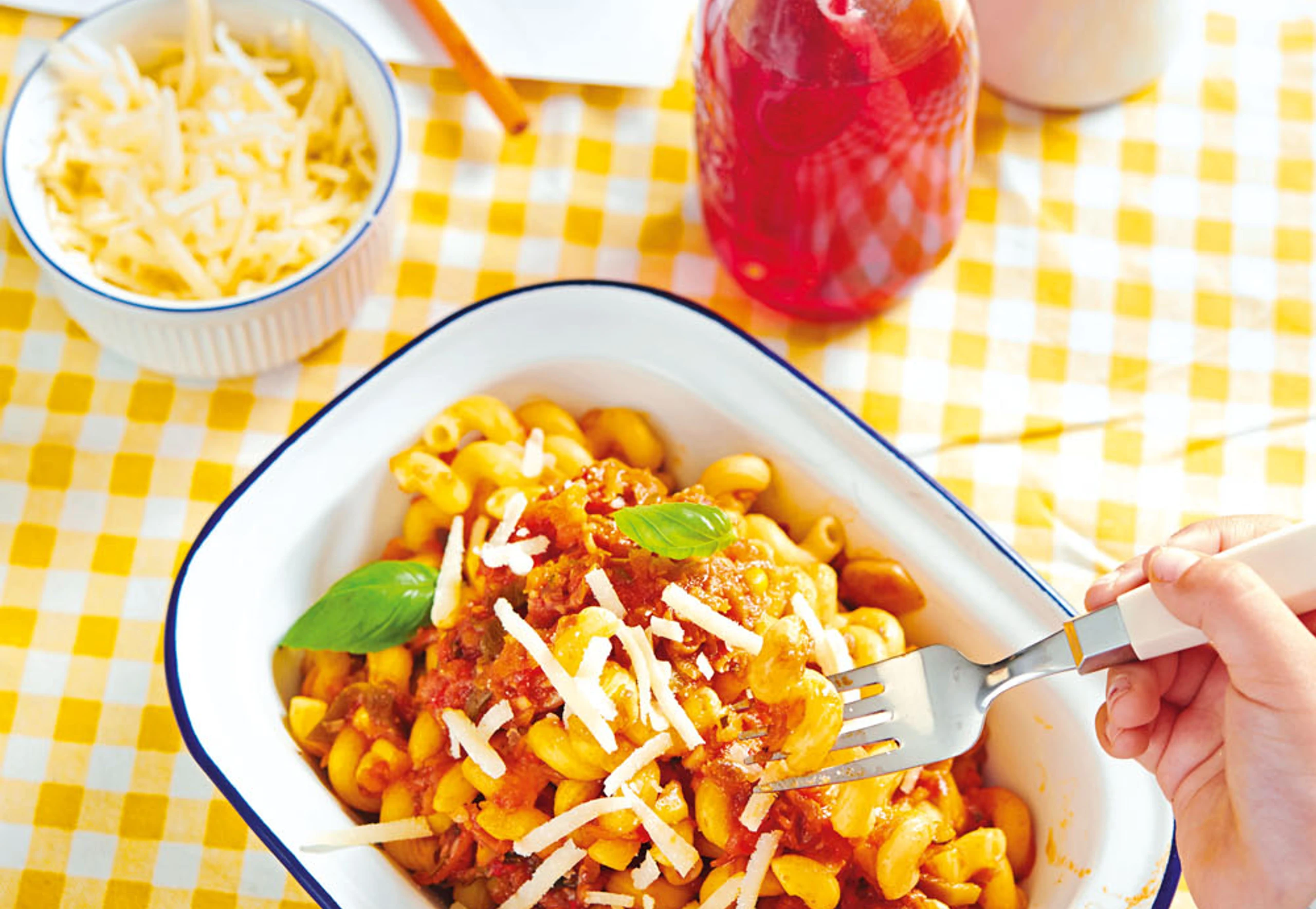 Zwiebel, Knoblauch und Karotten schälen. Paprika putzen. Gemüse und Champignons grob raspeln. Maiskörner vom Kolben schneiden. Gemüse und Champignons in Olivenöl ca. 10 Minuten kräftig anrösten. Paradeismark zugeben und 3 Minuten mitrösten. Pelati, Passata, Zucker und Suppe zugeben und verrühren. Sauce ca. 30 Minuten köcheln. Sauce mit Salz und Pfeffer abschmecken.