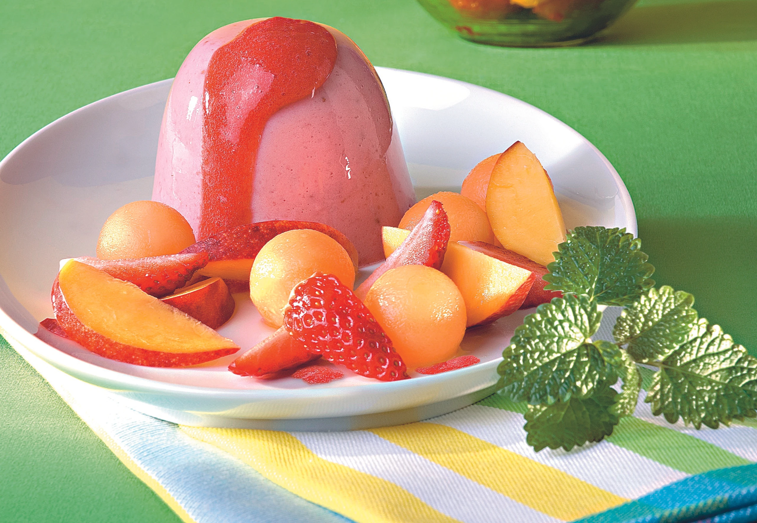Buttermilch-Erdbeer-Flan mit Fruchtsalat