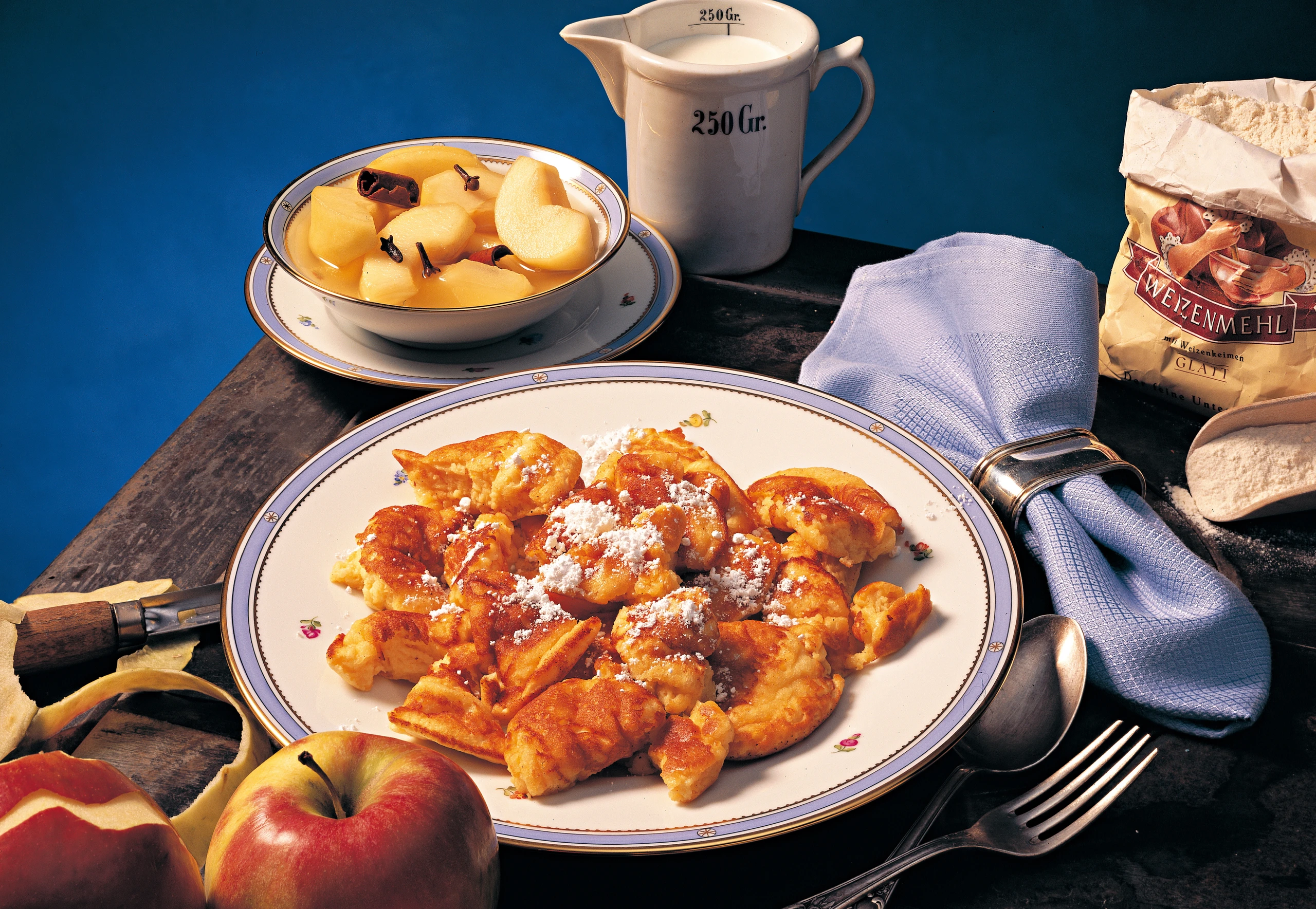- Masse wenden und im Rohr goldgelb fertigbacken. Buttermilch-Schmarren zerpflücken, auf Tellern anrichten und mit Staubzucker bestreut servieren.