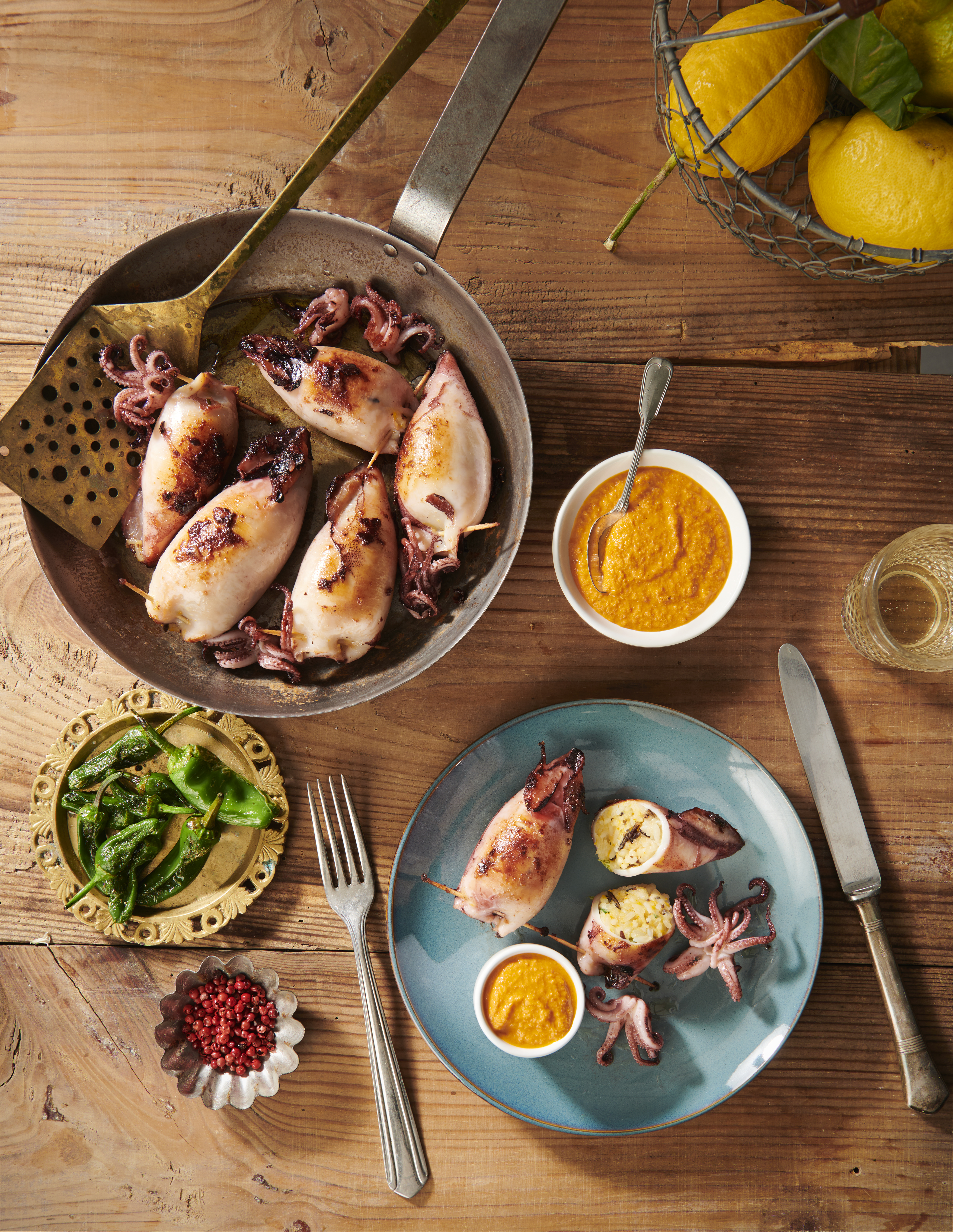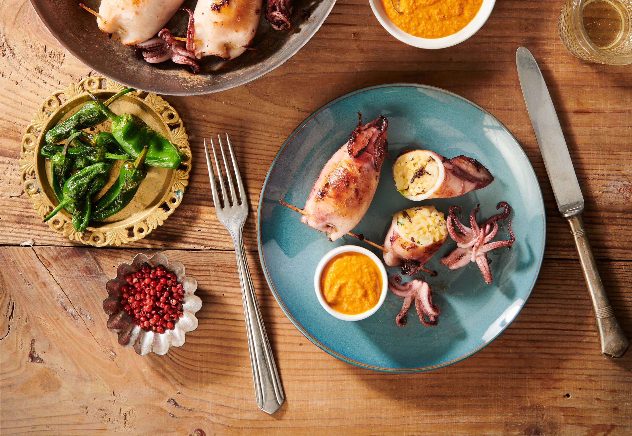 Calamari mit Reis-Zitrusfülle und Chorizosauce