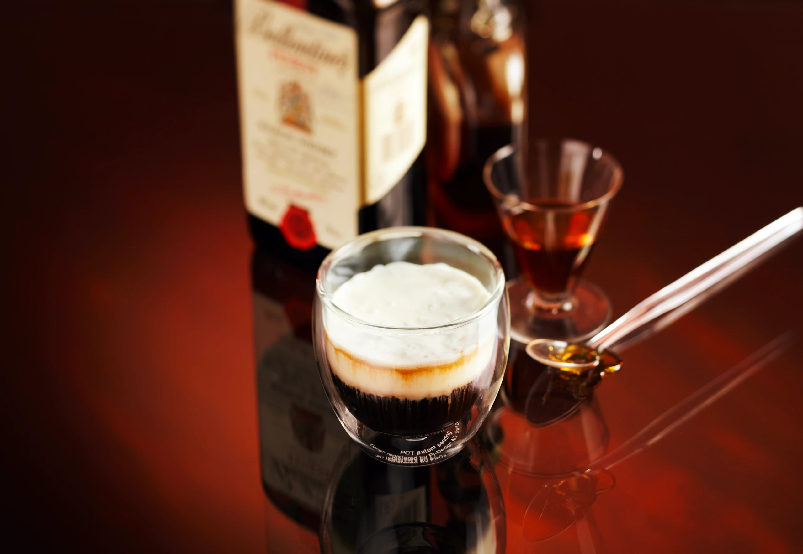 Obers und Ahornsirup dickcremig rühren. Kaffee und Whisky vermischen, in kleine Gläser füllen.