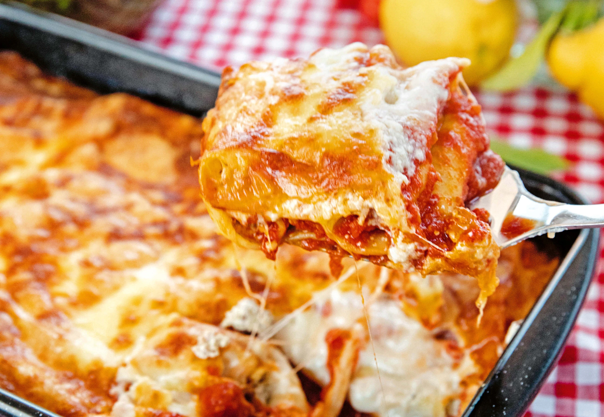Cannelloni mit der Fleischmasse füllen und in die Form legen. Mit Béchamelsauce übergießen und mit Mozzarella bestreuen. Cannelloni im Rohr (mittlere Schiene / Gitterrost) ca. 35 Minuten backen.