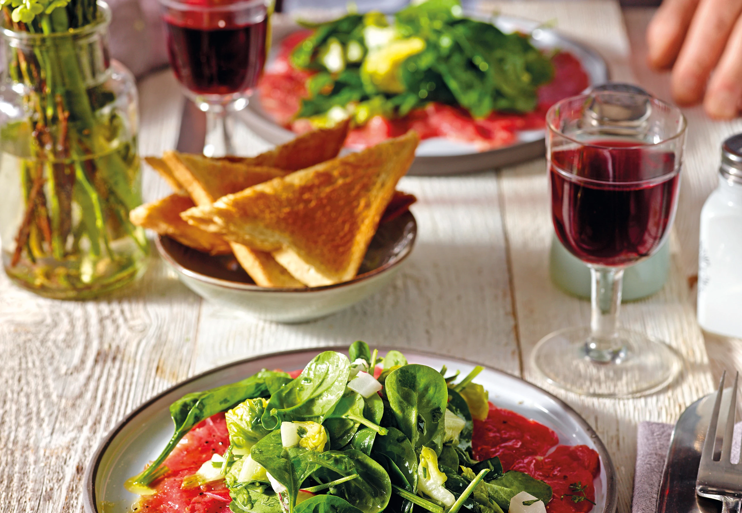Carpaccio vom Rind mit Spinat-Kräutersalat