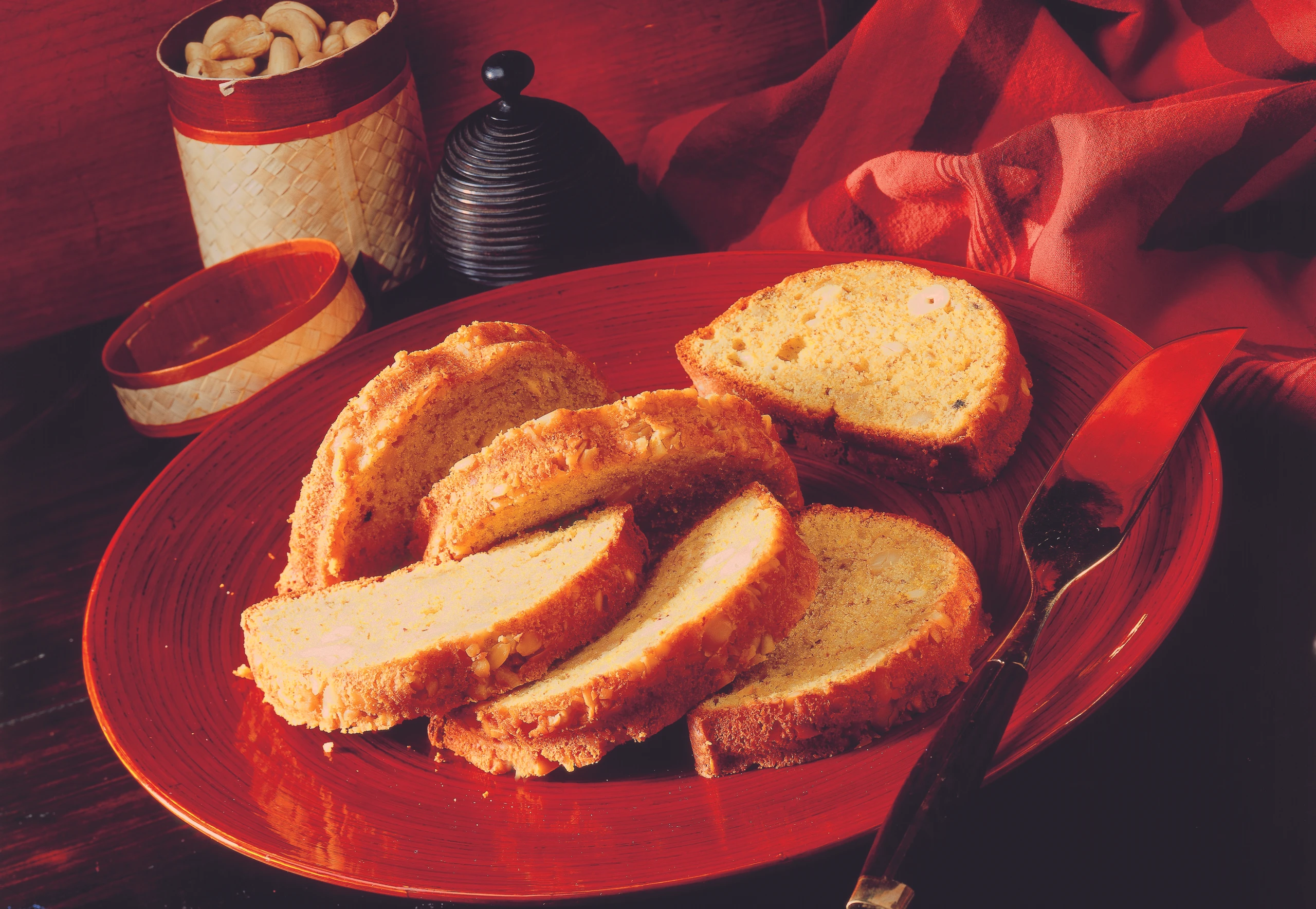 Eiklar mit übrigem Zucker (60 g) zu cremigem Schnee schlagen. Mehl in die Bananemasse rühren, Schnee und Cashewkerne unterheben.