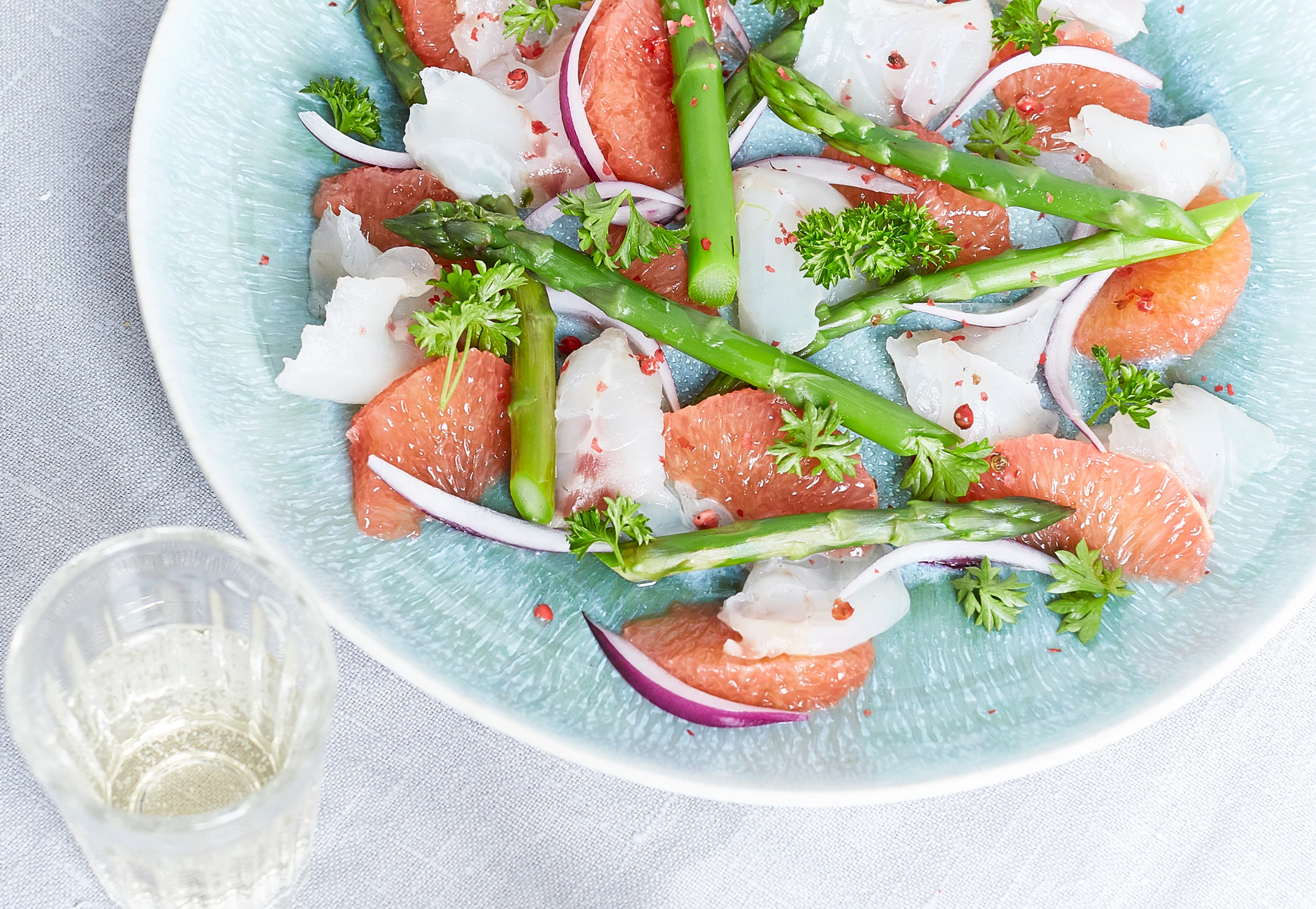 Ceviche mit grünem Spargel und Grapefruitfilets
