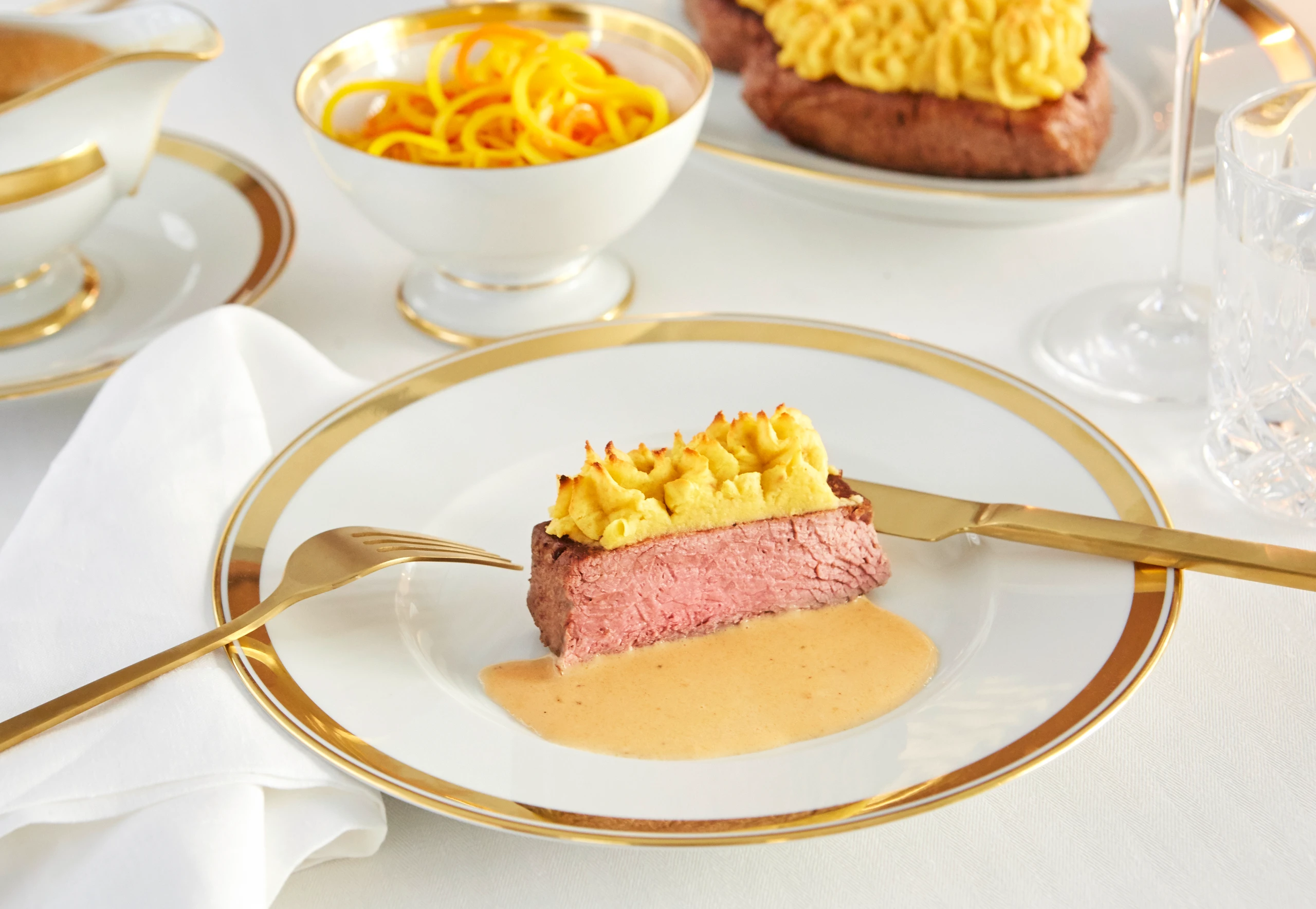 Chateaubriand mit Trüffelsauce und Gemüsestreifen