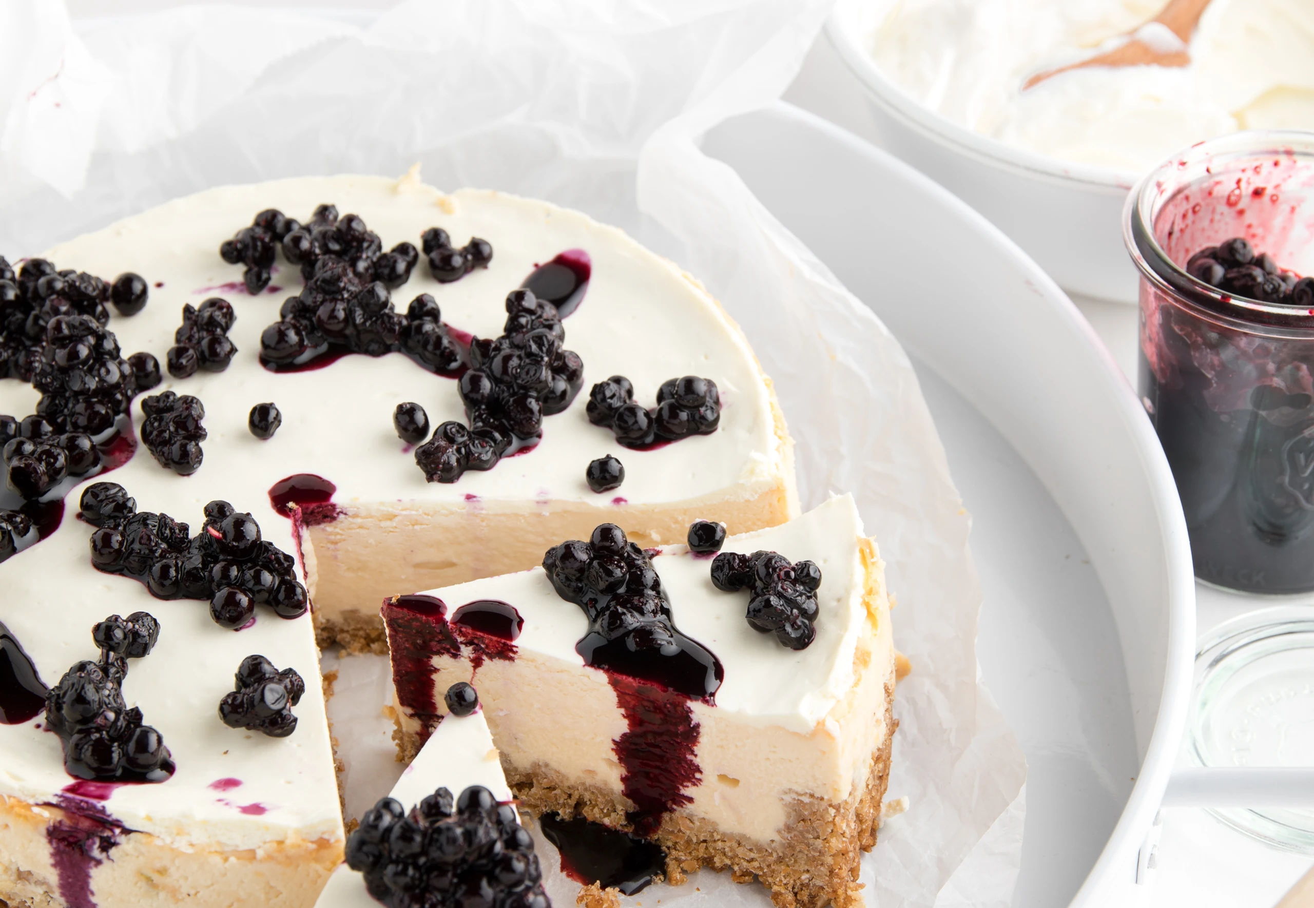 Cheesecake mit Müsliboden und Heidelbeerkompott