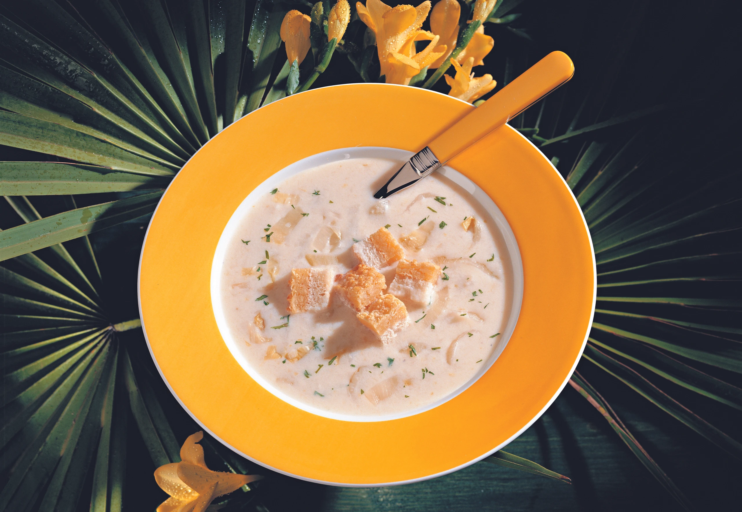Zwiebel und Chicorée in Butter anschwitzen, mit Wein und Suppe aufgießen und aufkochen. Sauerrahm mit Mehl vermischen, in die Suppe rühren und auf kleiner Flamme ca. 10 Minuten köcheln.