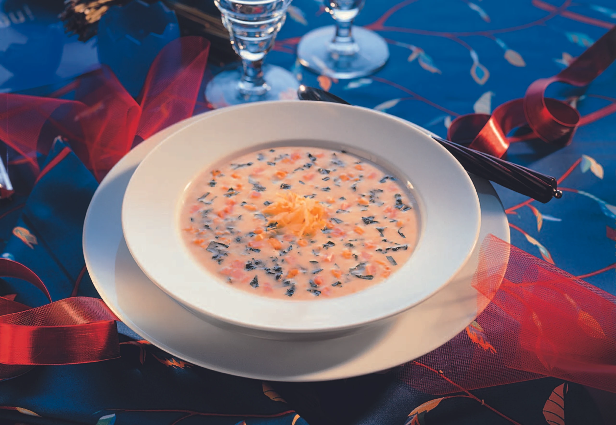 Zwiebel und Grieß unter ständigem Rühren in Butter anschwitzen, mit Suppe und Obers aufgießen und aufkochen, Chicorée zugeben und bei geringer Hitze ca. 10 Minuten köcheln.