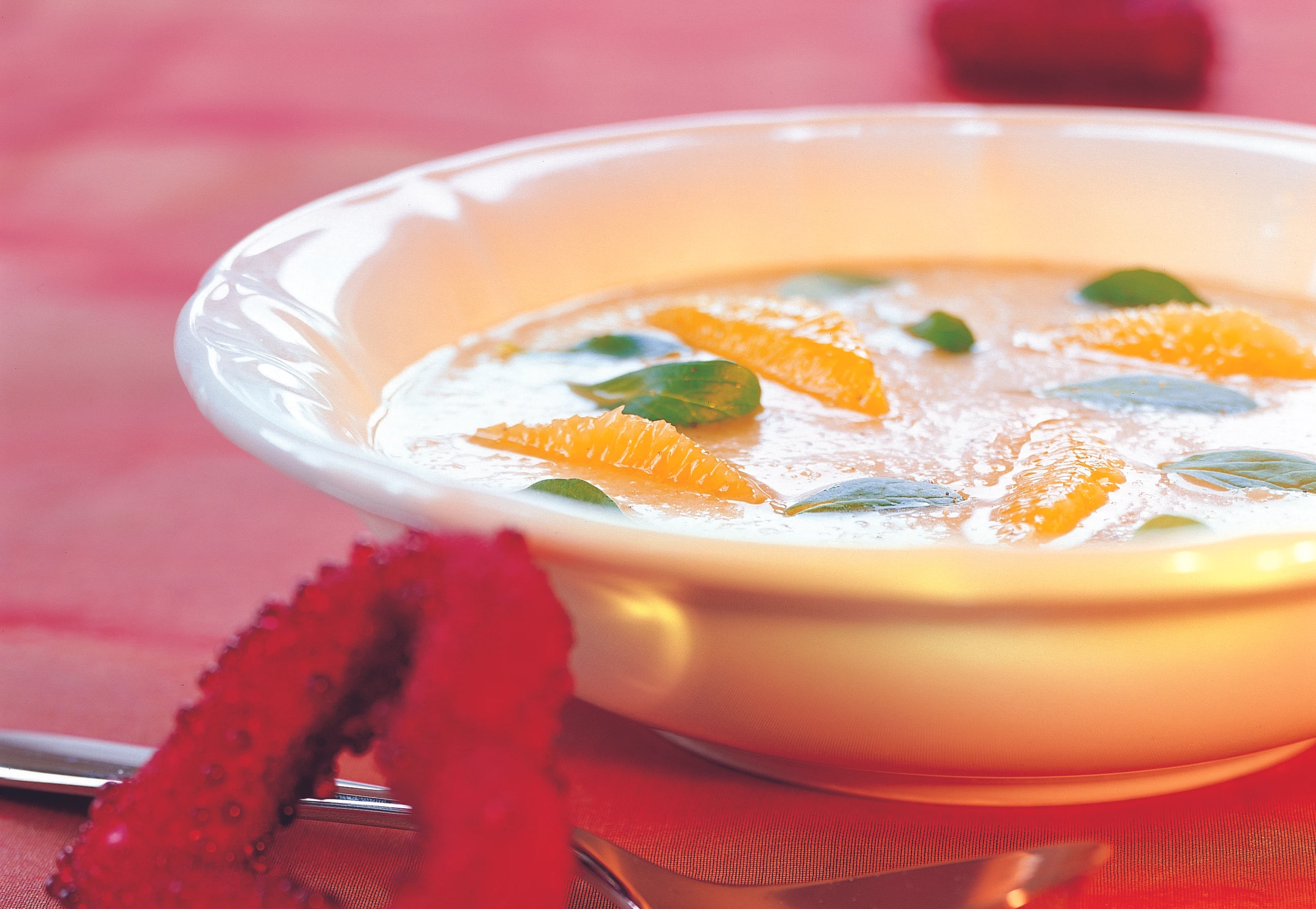 Chicoréesuppe mit Orangen und Vogerlsalat