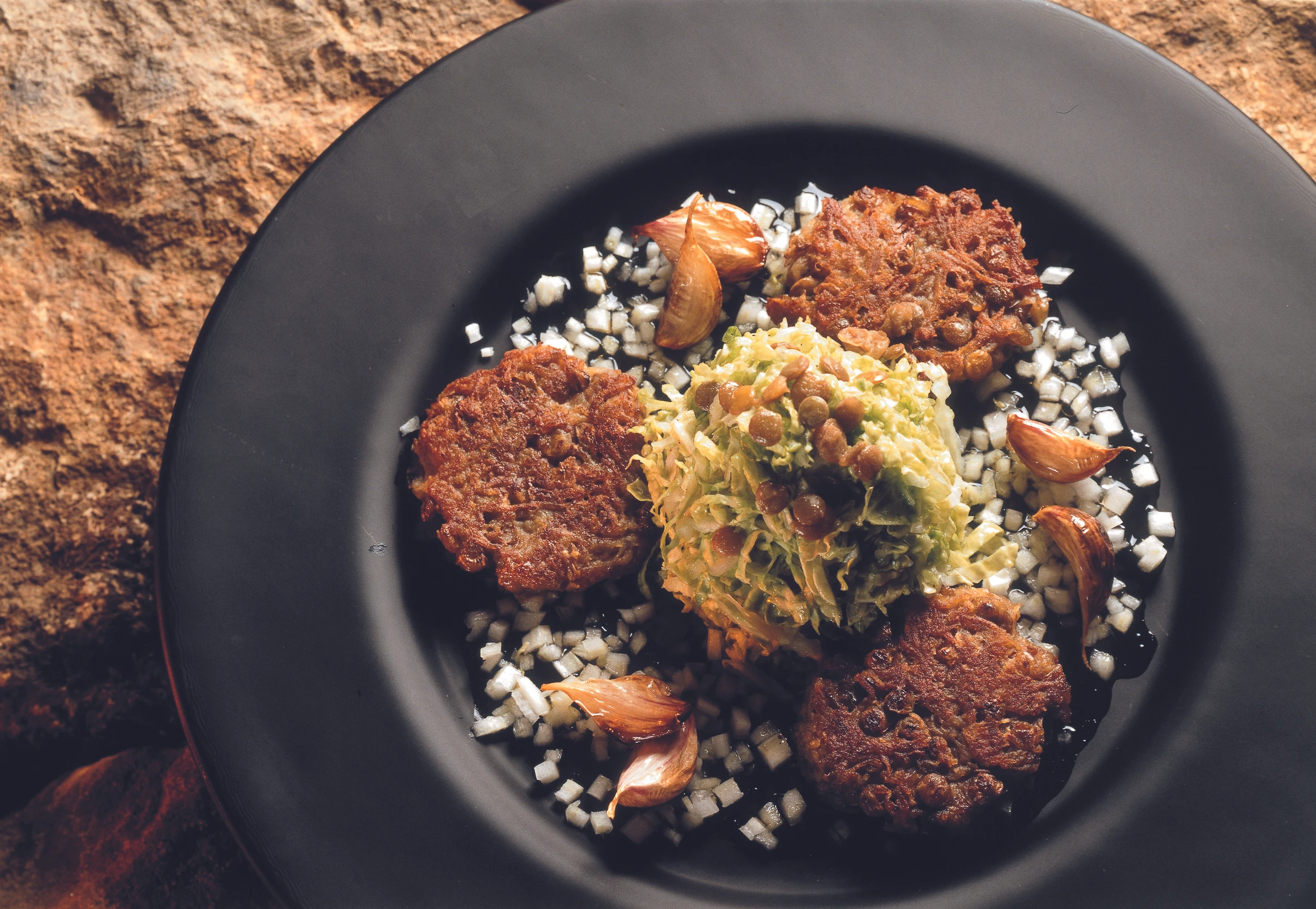Erdäpfel schälen, raspeln, mit den Linsen vermischen und mit Salz und Pfeffer würzen. Aus der Masse 12 Laibchen formen. Backrohr auf 50 °C vorheizen.
