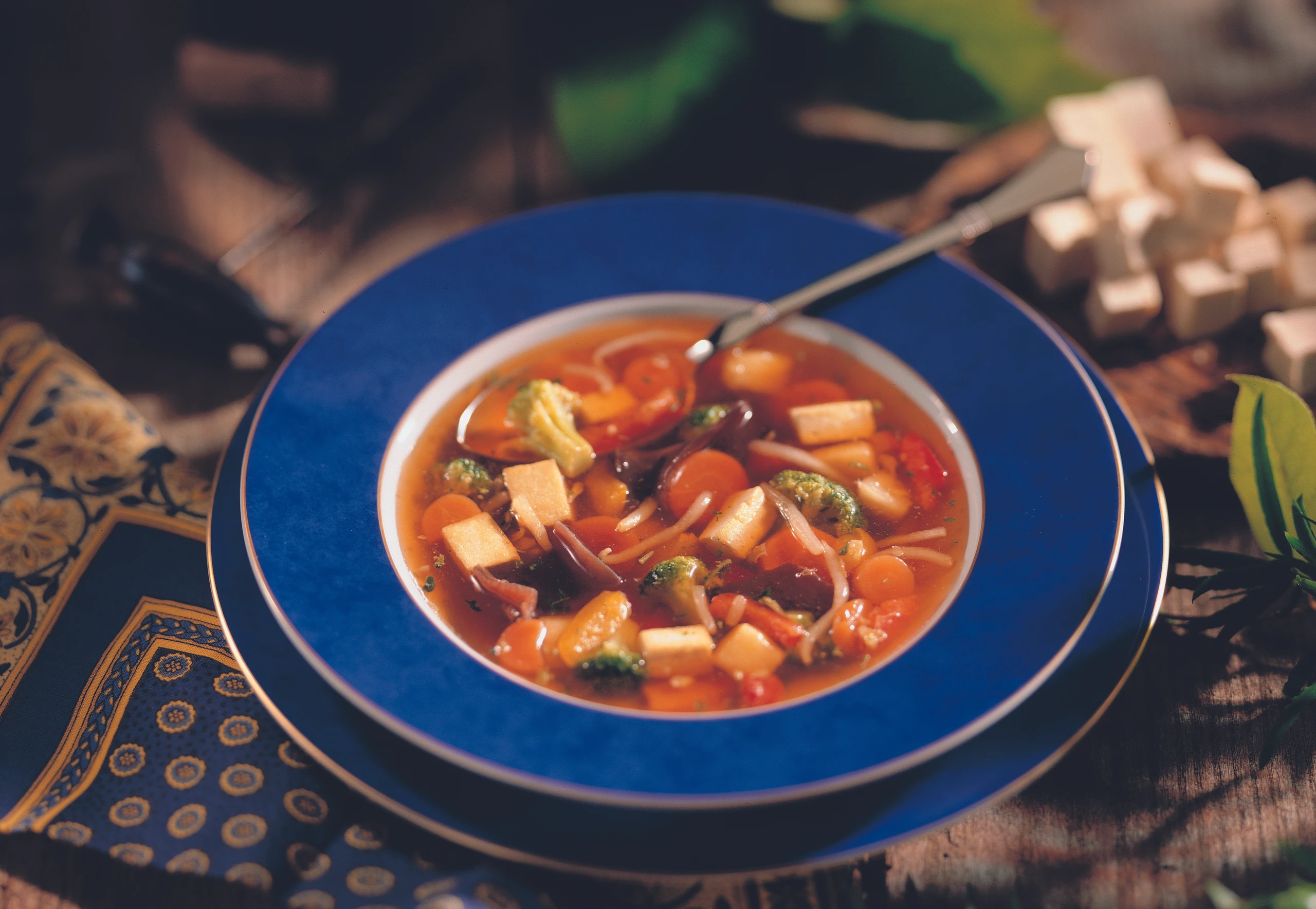 Petersilie und Tofu in die Suppe mischen und ca. 1 Minute ziehen lassen. Suppe in Teller schöpfen und gleich servieren.