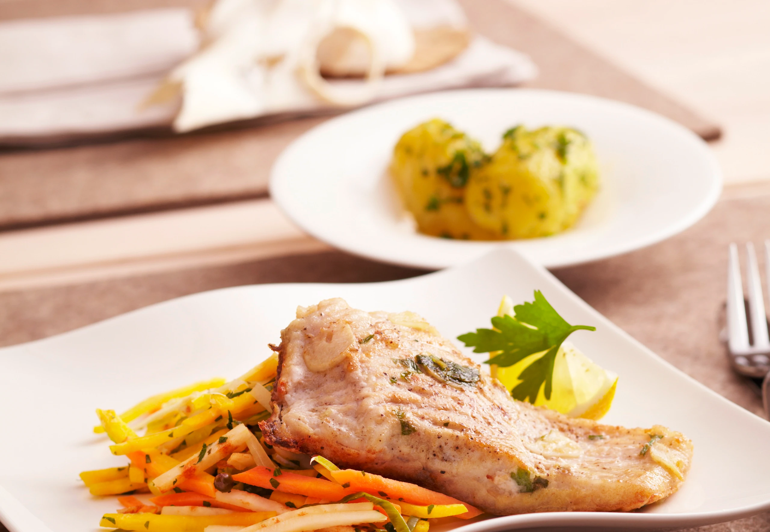 Karpfen mit dem Gemüse anrichten. Dazu empfiehlt Sieglinde Groiss Petersilerdäpfel.