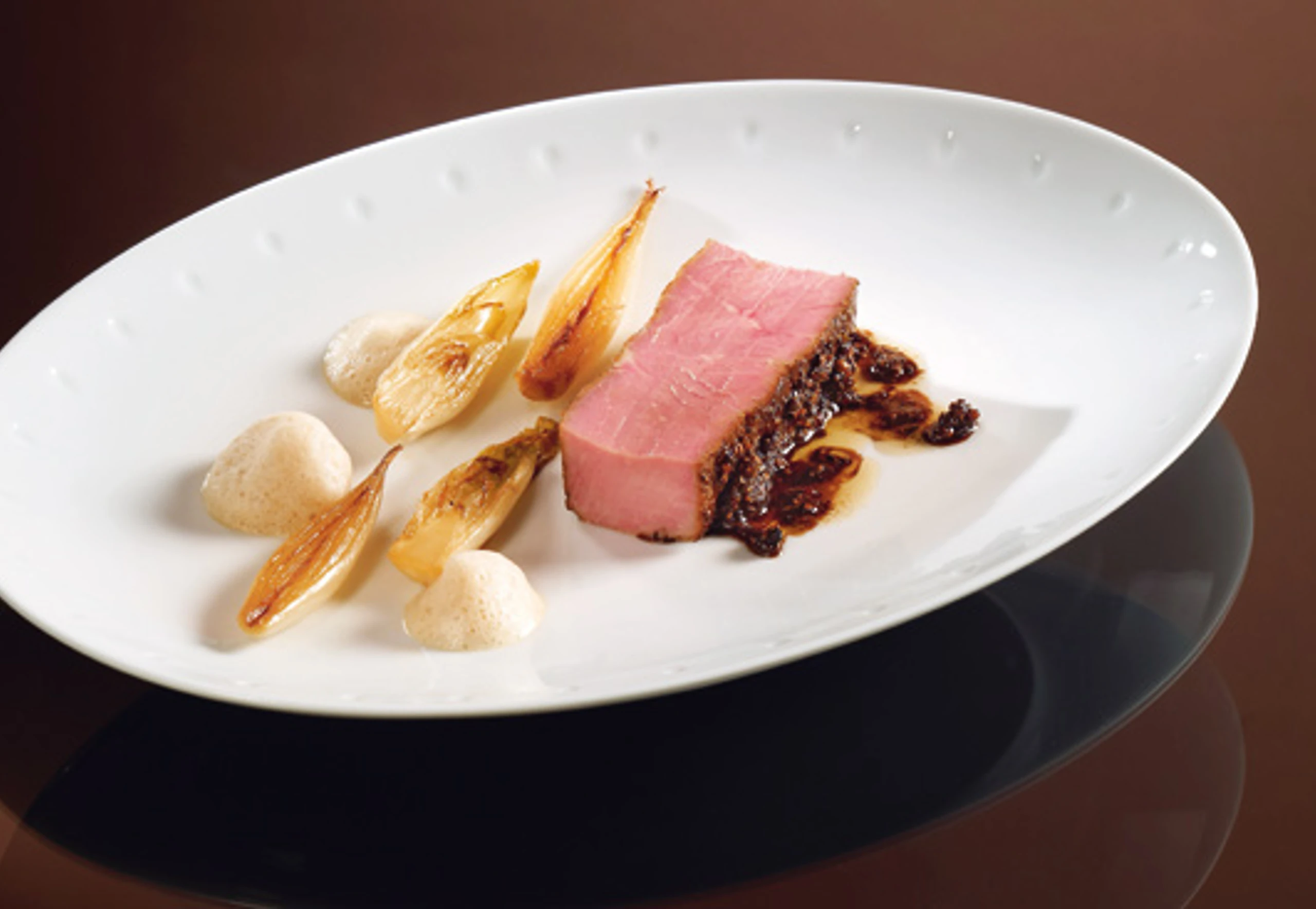 - Milch erwärmen und aufschäumen. Jedes Fleischstück an den Rändern zuschneiden und längs halbieren. Fleisch mit Chicorée und Milchschaum anrichten.
