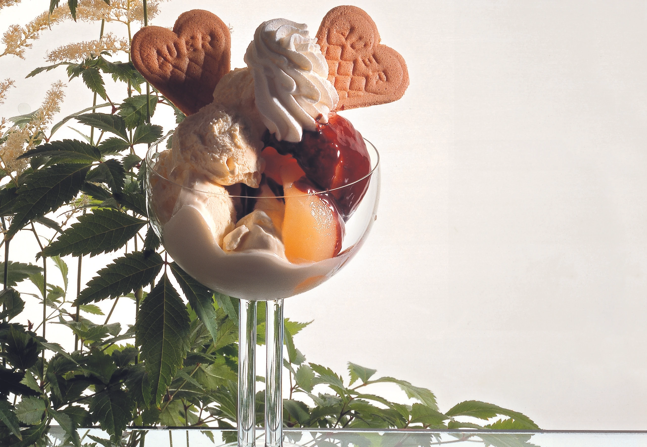 Schlagobers steif schlagen. Vanilleeis in gekühlten gläsern anrichten und mit den Birnen belegen. Schokoladesauce darüber gießen und mit Schlagobers garnieren. Besonders hübsch sieht es aus, wenn man den Eisbecher mit Waffelherzen dekoriert.