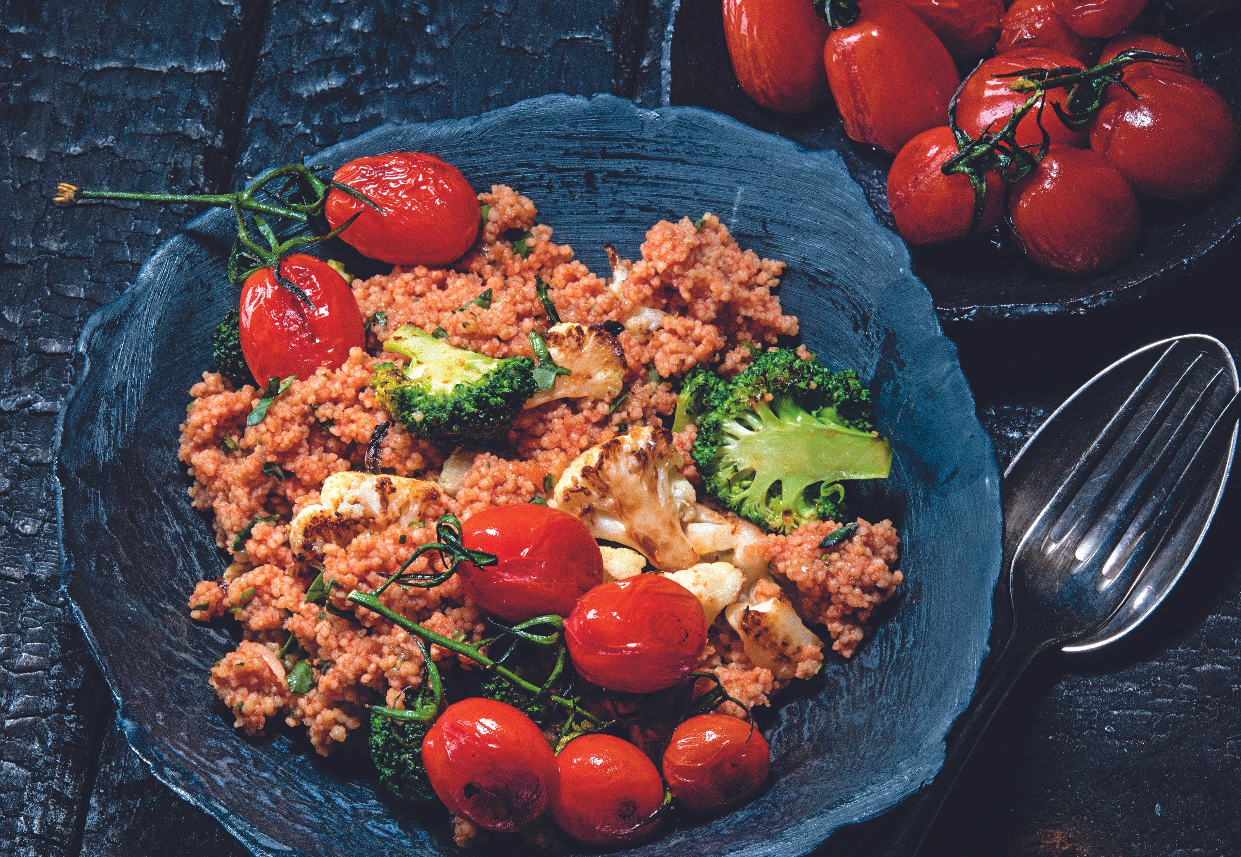 Couscous mit Paradeisern, Brokkoli und Karfiol