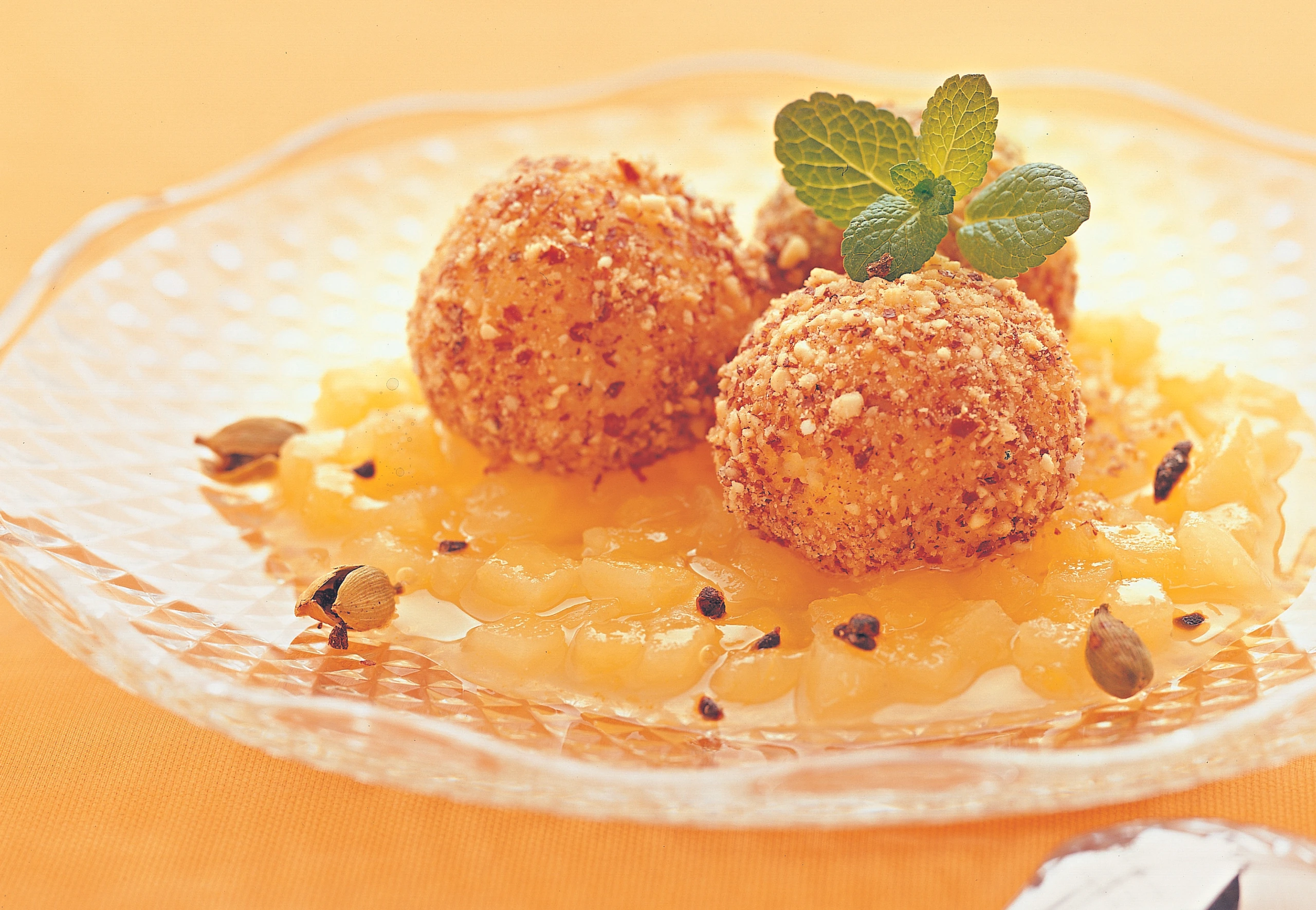 Couscousknöderl mit Mandeln und Apfel-Kardamomsauce