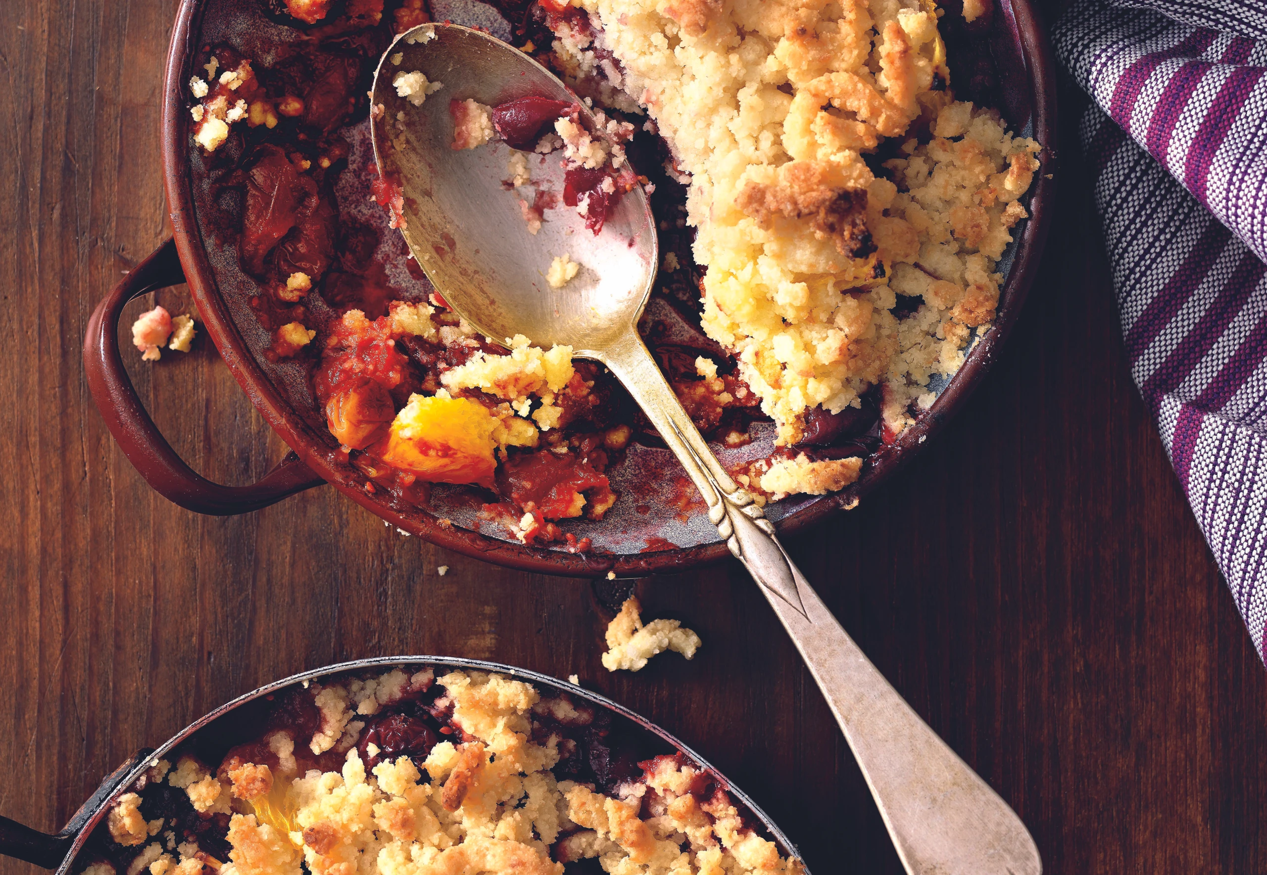 Früchte in den Formen verteilen. Teig grob zerkrümeln und locker auf den Früchten verteilen. Crumbles im Rohr (mittlere Schiene / Gitterrost) ca. 12 Minuten backen.