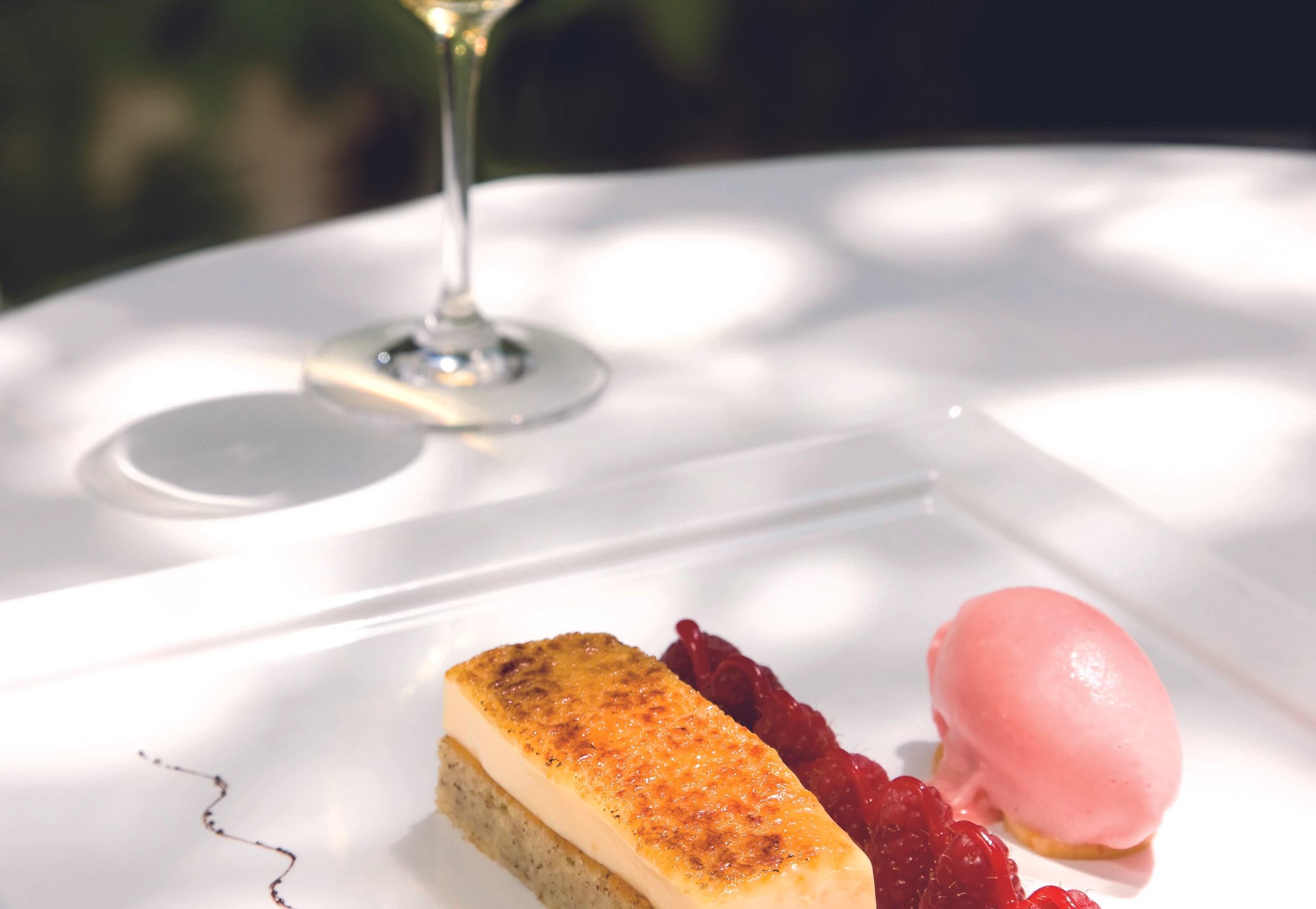 - Schnitte portionieren und mit den Himbeeren garnieren. Dazu passt Himbeereis.