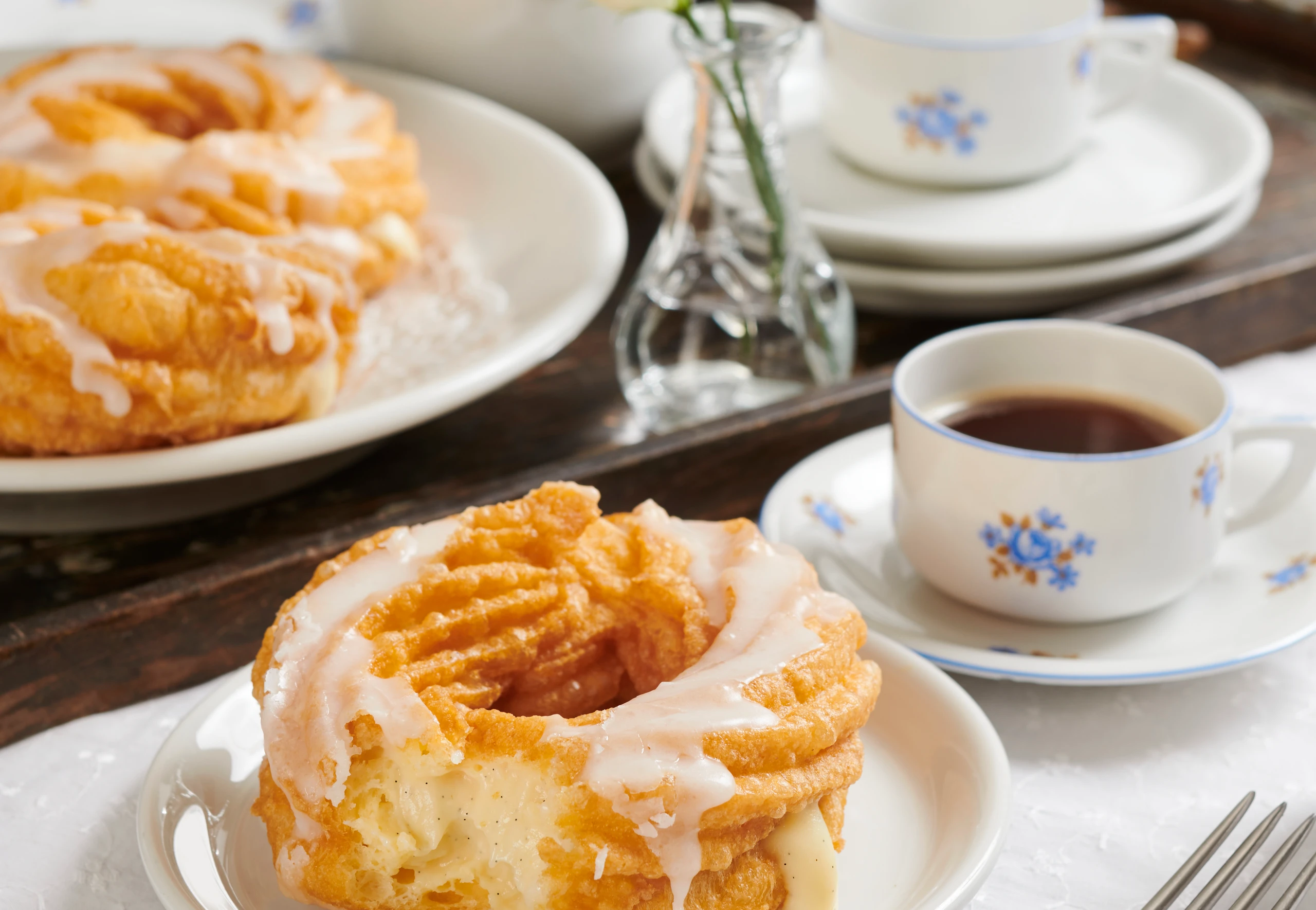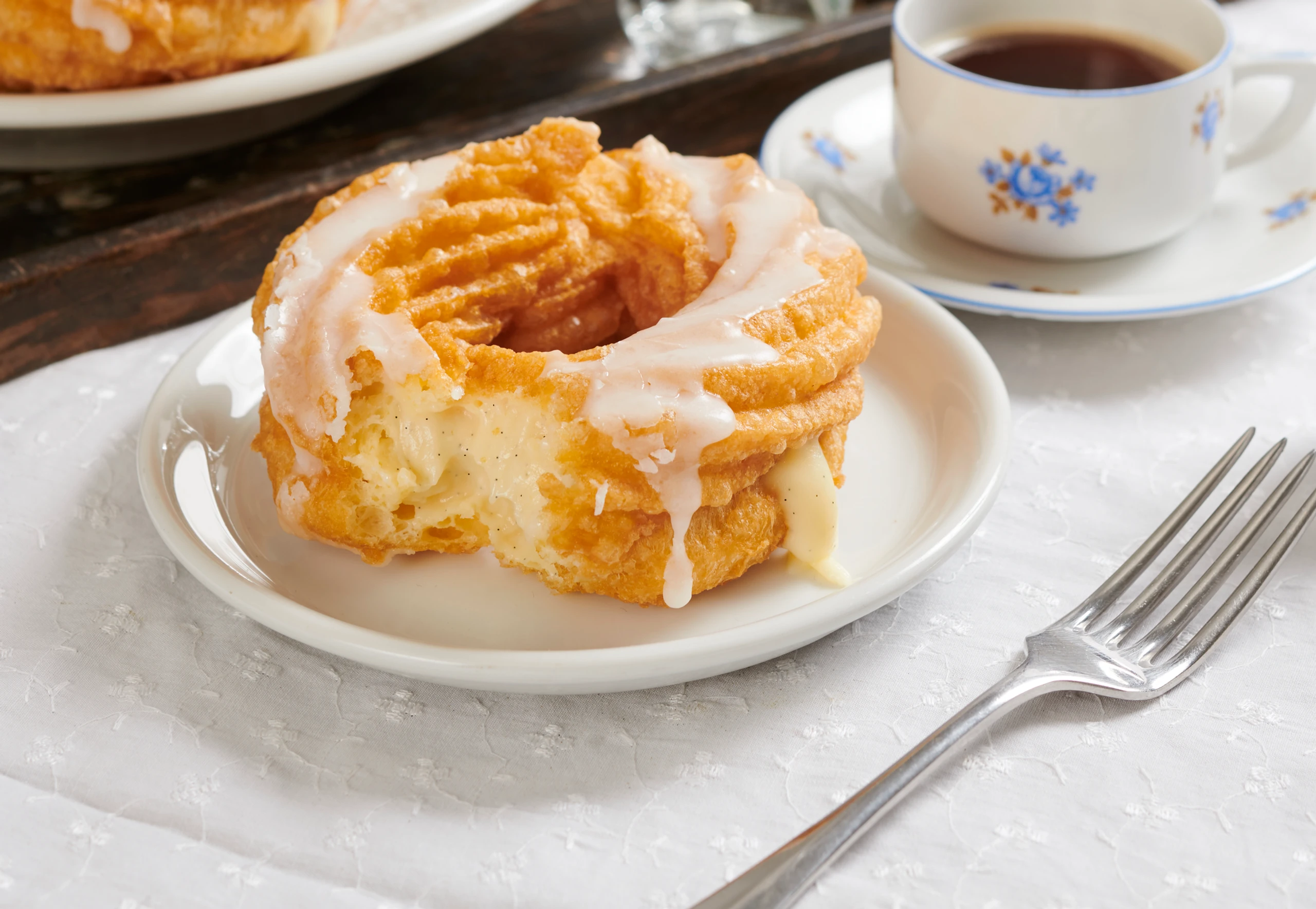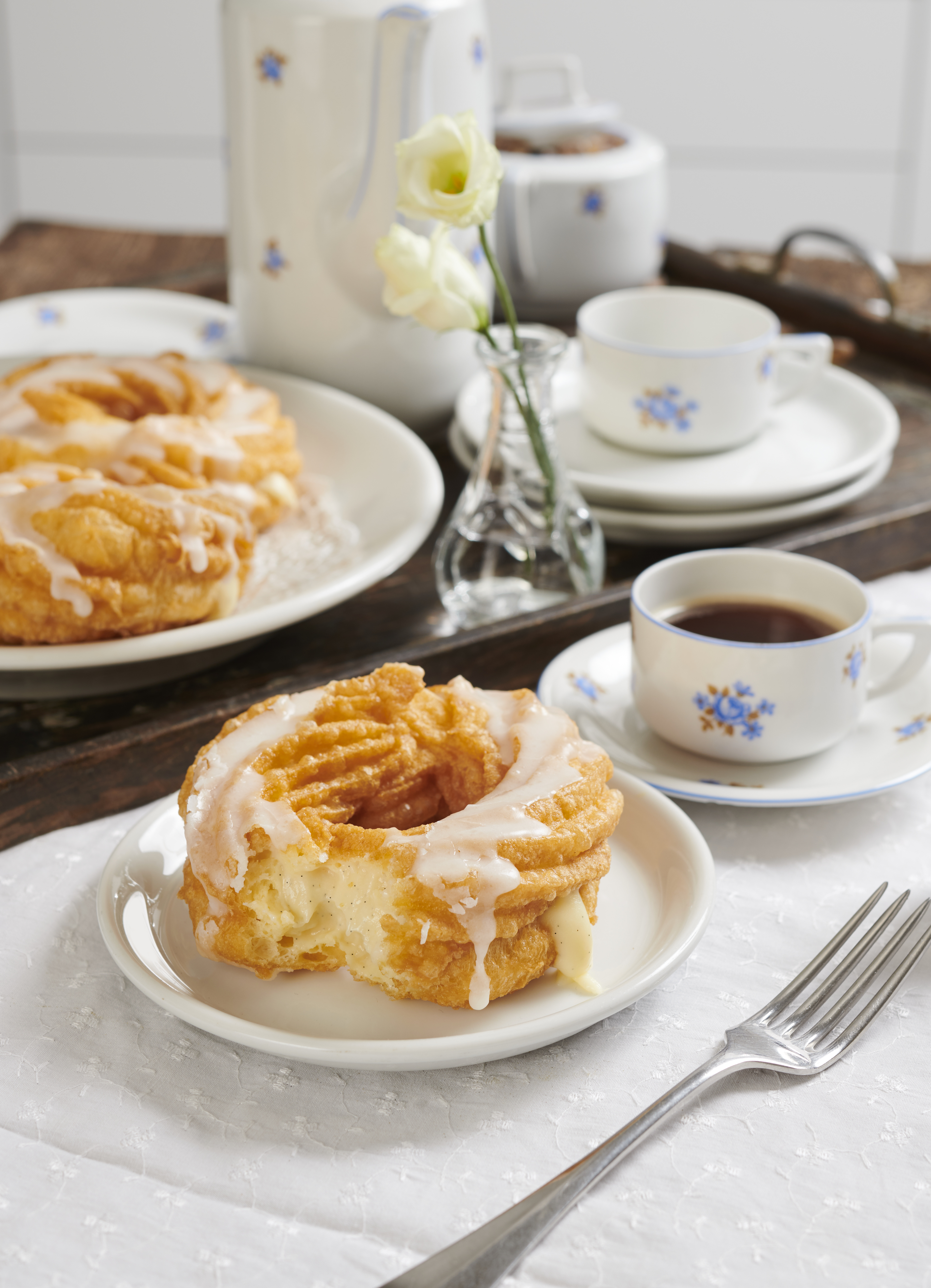 Vanillecreme kurz aufrühren und in einen Dressiersack mit schmaler Tülle füllen. Kringel damit an mehreren Stellen einstechen und mit der Creme füllen. Für die Glasur Zucker und Zitronensaft glatt rühren. Ringe damit beträufeln.