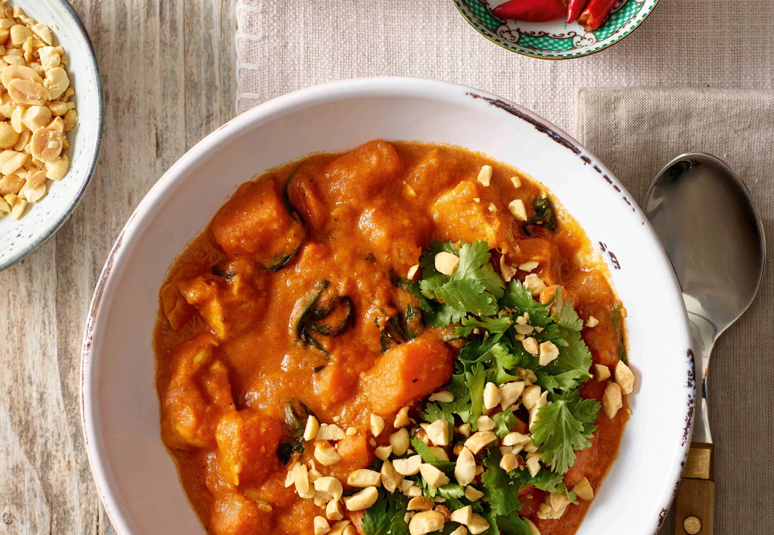 Cremiger Erdnuss-Hendleintopf mit Süßkartoffeln